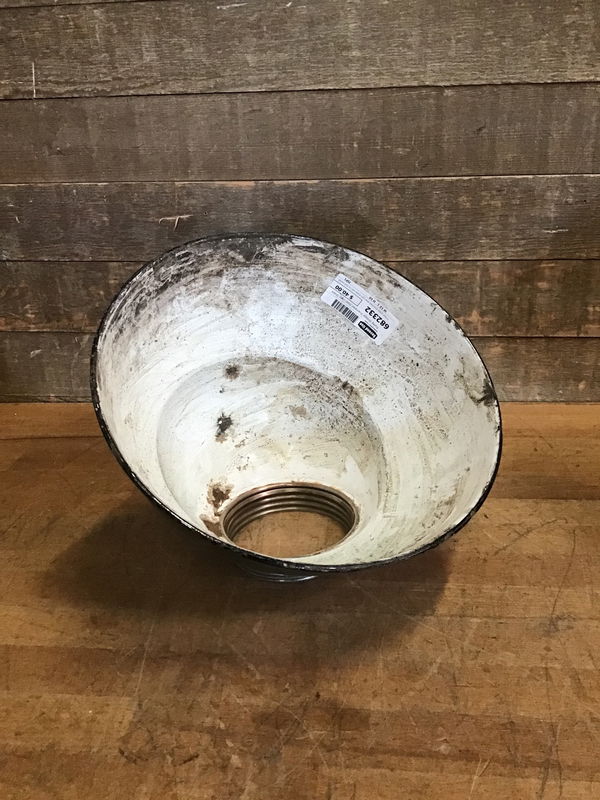 Vintage green enameled steel light shade with no bulb socket/fitter on top. Hole on top measures 4.25" in diameter. Has some chips and dings but still beats that flimsy Ikea shade. This is the real deal!