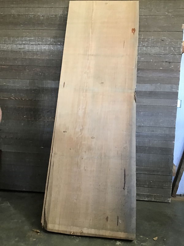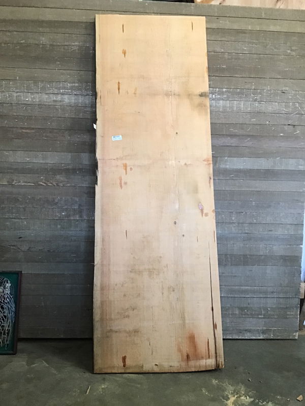 Locally milled and kiln dried. This incredible old growth slab has extremely tight grain. Only has three small knots. Great slab for a kitchen island countertop. Back edge has a split but you will net out at 33" once cut down.