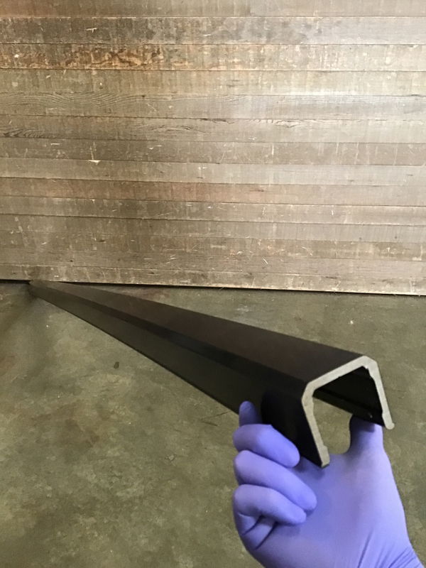 Drink style railing for decks made of composite material painted black by TimberTech. Never installed though looks to have been stored for a bit outside as the packaging is a bit rough. These can retail for well over $200 per section, such a great deal!