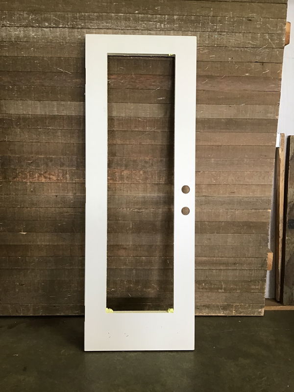 28" fiberglass exterior french door with no glass. Right hand swing hinge cuts. Install your own pane or use some plexi glass to get a nice, never installed before door for a deal! Opening is 17"x65".