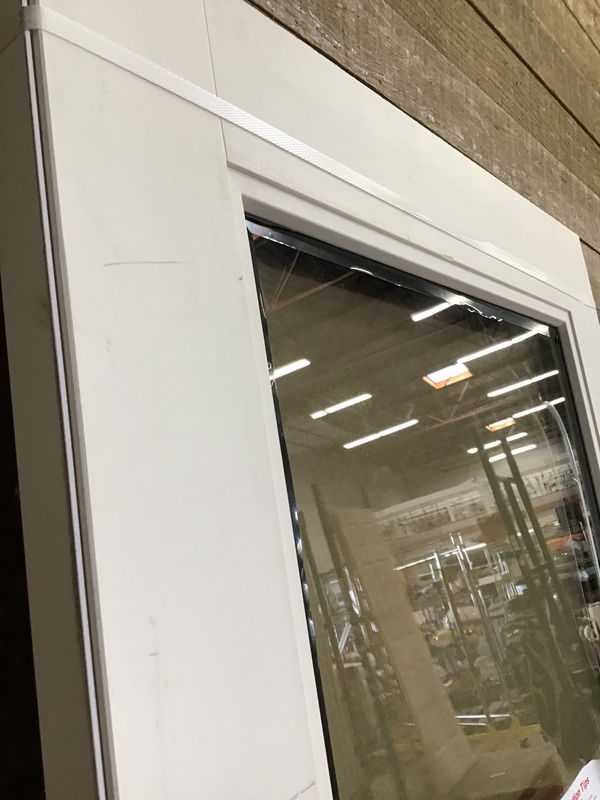 Fiberglass clad thermopane exterior door in great shape and never installed before. There may be minor cosmetic blemishes from transporting it and moving it around but is in excellent shape.