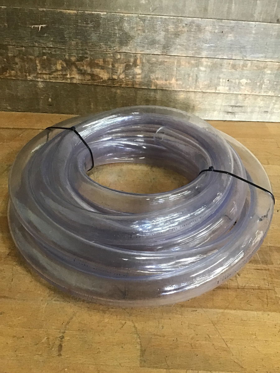 Clear PVC low pressure tubing with an outer diameter of 1-5/8 and inner diameter of 1-1/4". About 25 feet of it.
