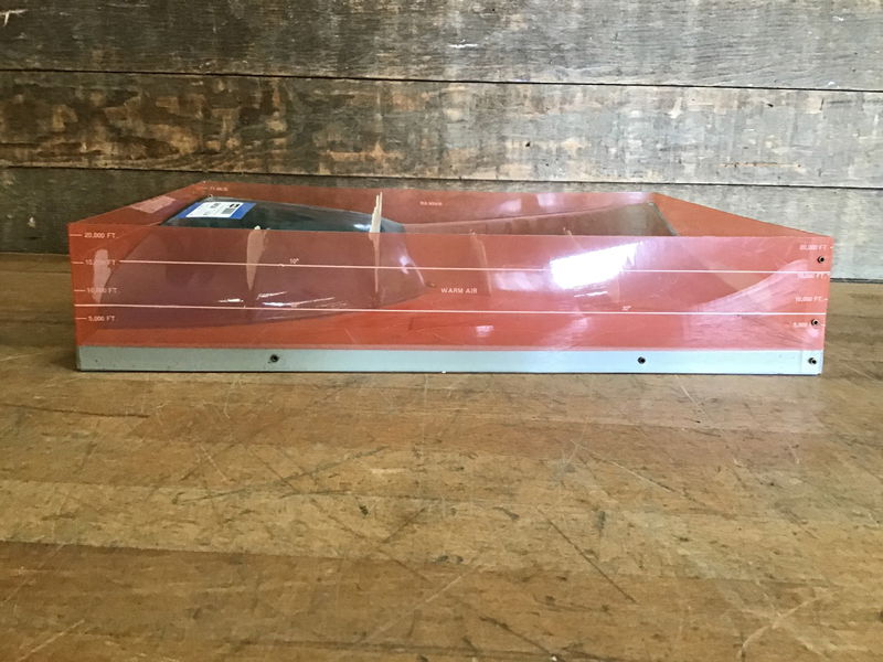 Vintage weather model by Hubbard Scientific displaying various cloud types interacting with weather fronts. Has some wear from normal classroom use.
