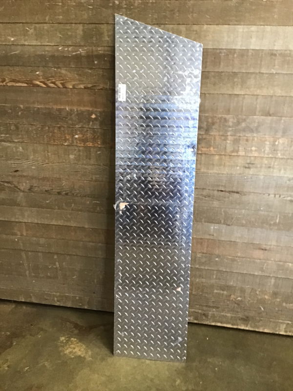 Piece of 1/8" thick aluminum diamond plate. Has some rivets along the edges.