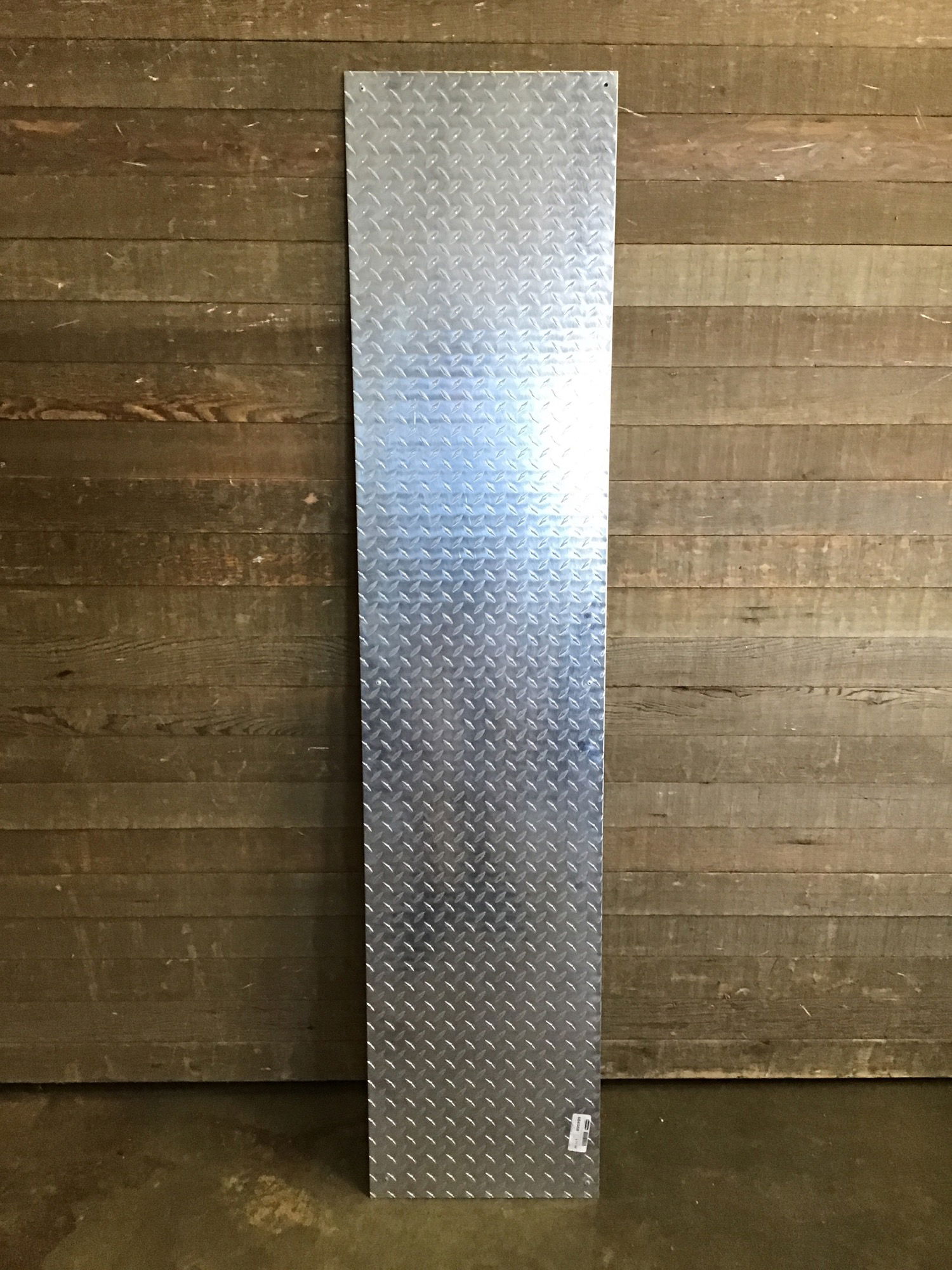 Piece of 1/8" thick aluminum diamond plate. Has some rivets along the edges.