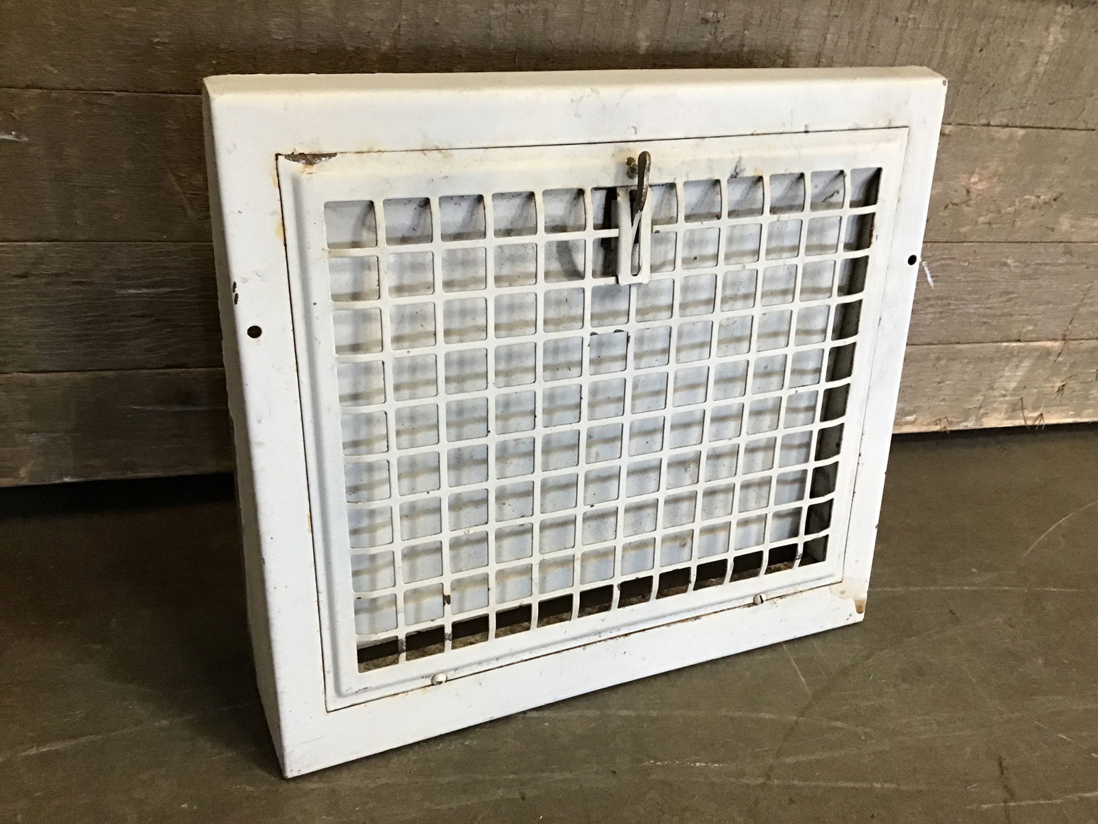 Vintage steel heating great in good, used condition. Has been painted white and there is some minor surface rust. Should clean up easy though and the flap moves as it should.