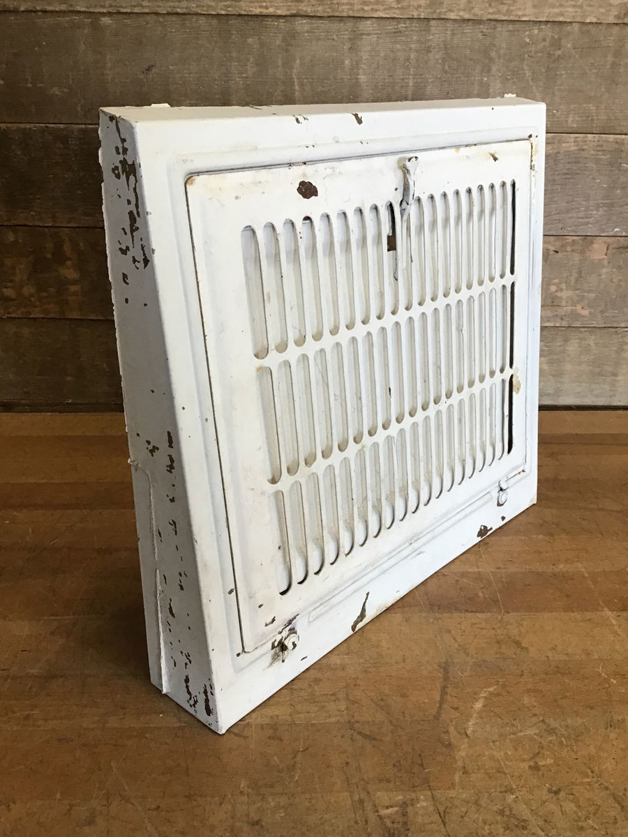 Vintage steel heating great in good, used condition. Has been painted white and there is some minor surface rust. Should clean up easy though and the flap moves as it should.