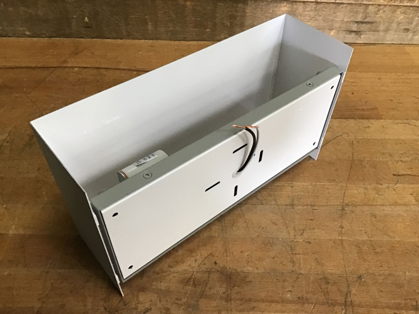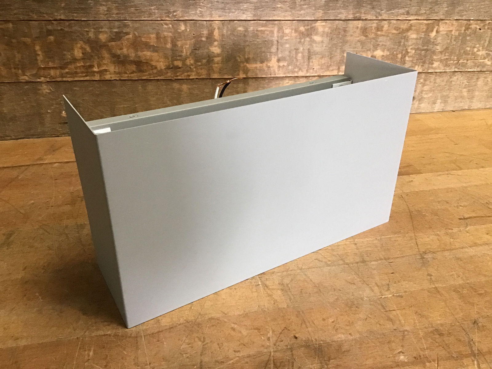 Contemporary wall washing sconce from Ashley Lighting. This light has a sleek and modern rectangular sheet of light grey steel that covers one bulb, washing the wall in light. These came new in box, never installed. This is a bulk item, no holds please. Photo may be representational.
