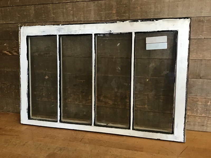 Vintage Fir wood window sash with 4 true divided panes of wavy glass. These make great hanging partitions, or DIY greenhouses/cold frames.