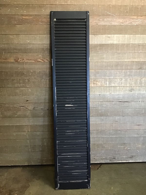 Wood exterior shutter in fair, used condition. The black paint on all sides is chipping pretty bad. Best to power wash or scrape off and repaint. Price reflects condition. Could be fun to repurpose for decor!