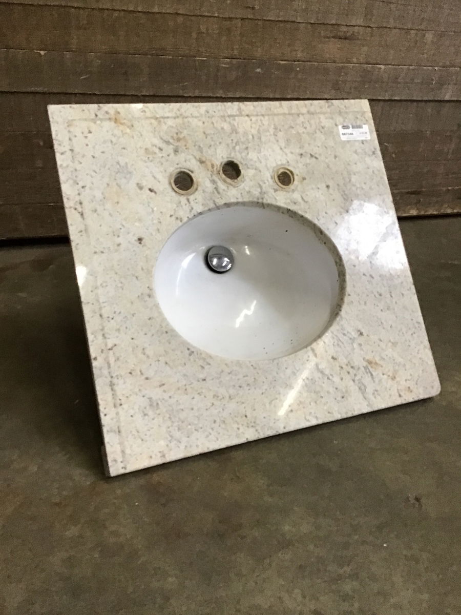 Granite vanity top with undermount porcelain sink.