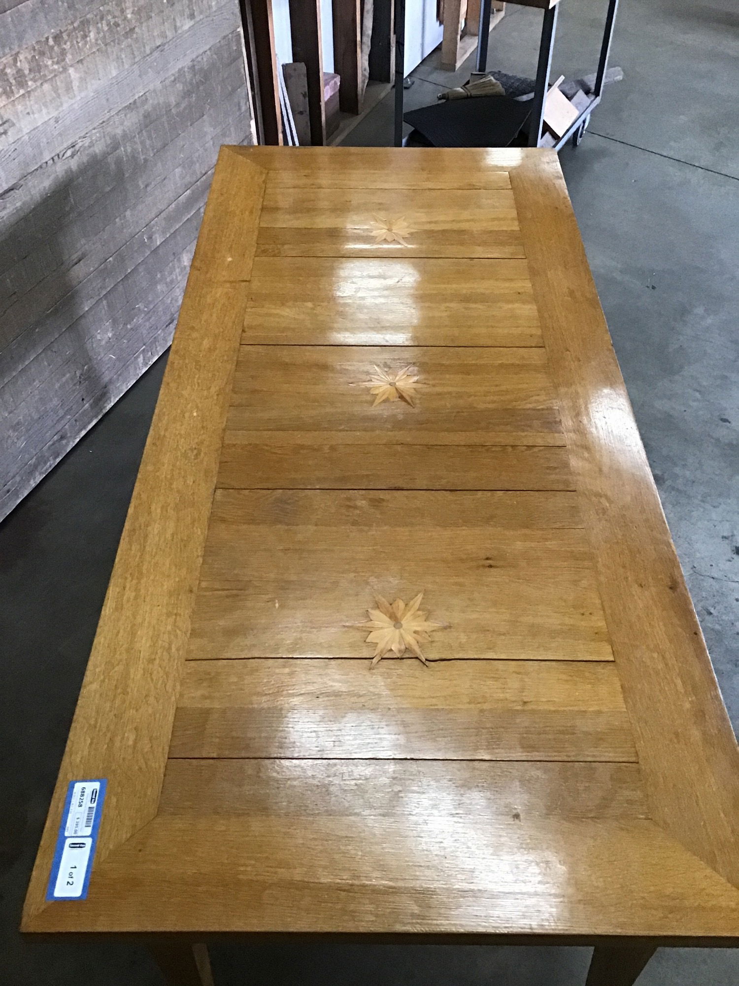 Antique Inlayed White Oak Dining Table
