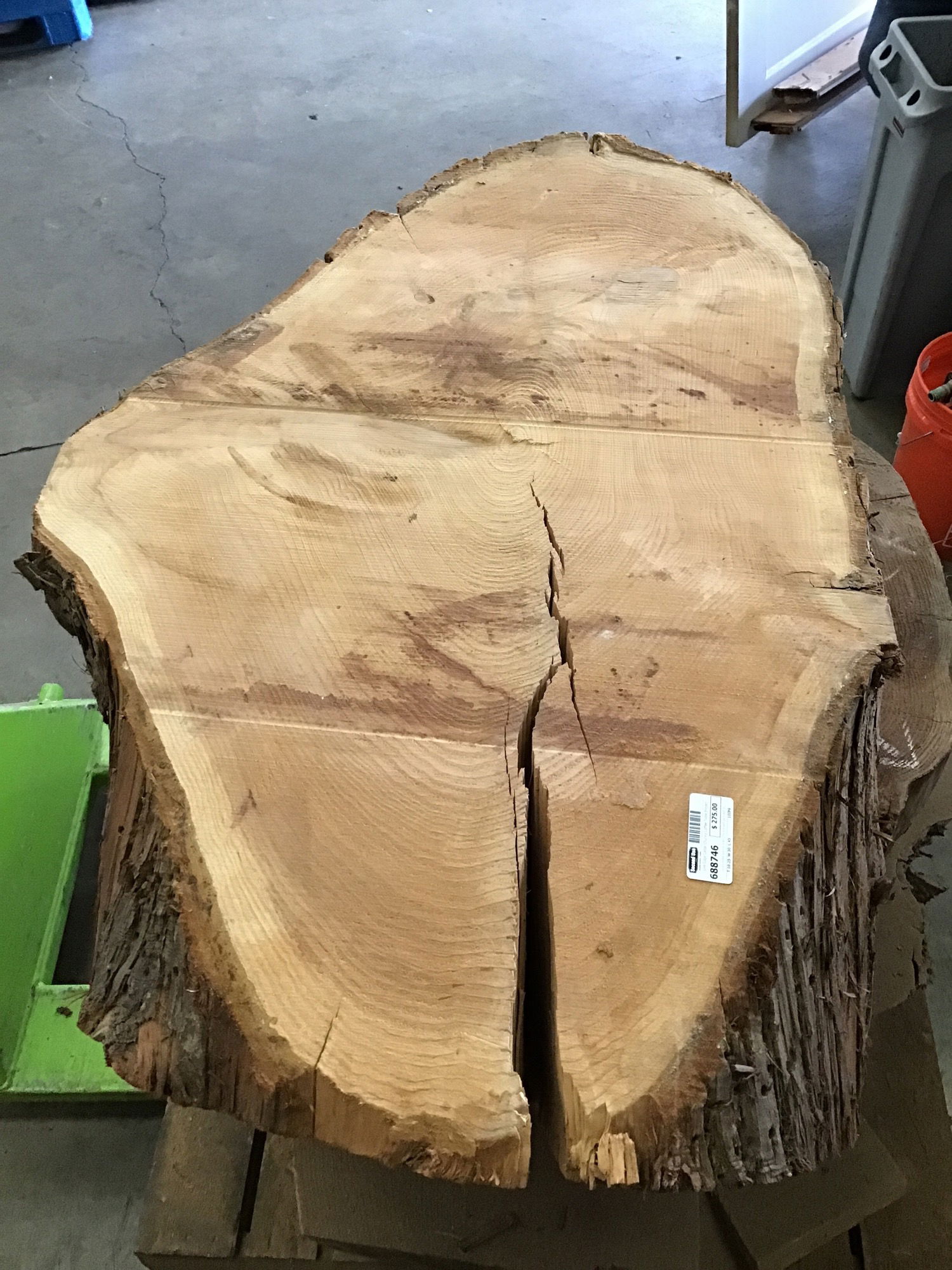 Locally milled and kiln dried. This is a slant cut crotch cookie slab. This has a very distinct grain pattern on the top, would make an amazing coffee table.