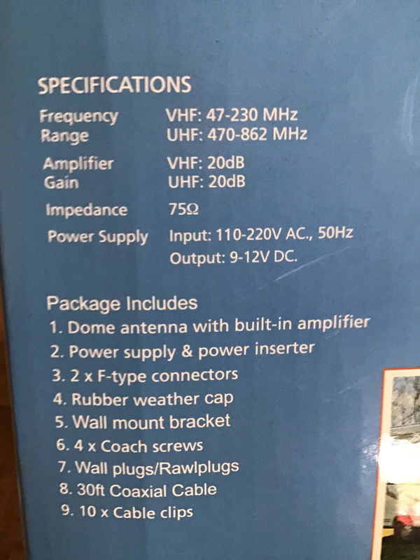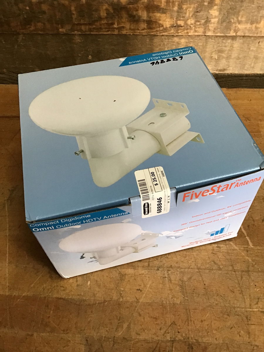 FiveStar Omni Compact Digidome outdoor HDTV antenna. Appears complete and unused. Similar items are retailing for $65-95.