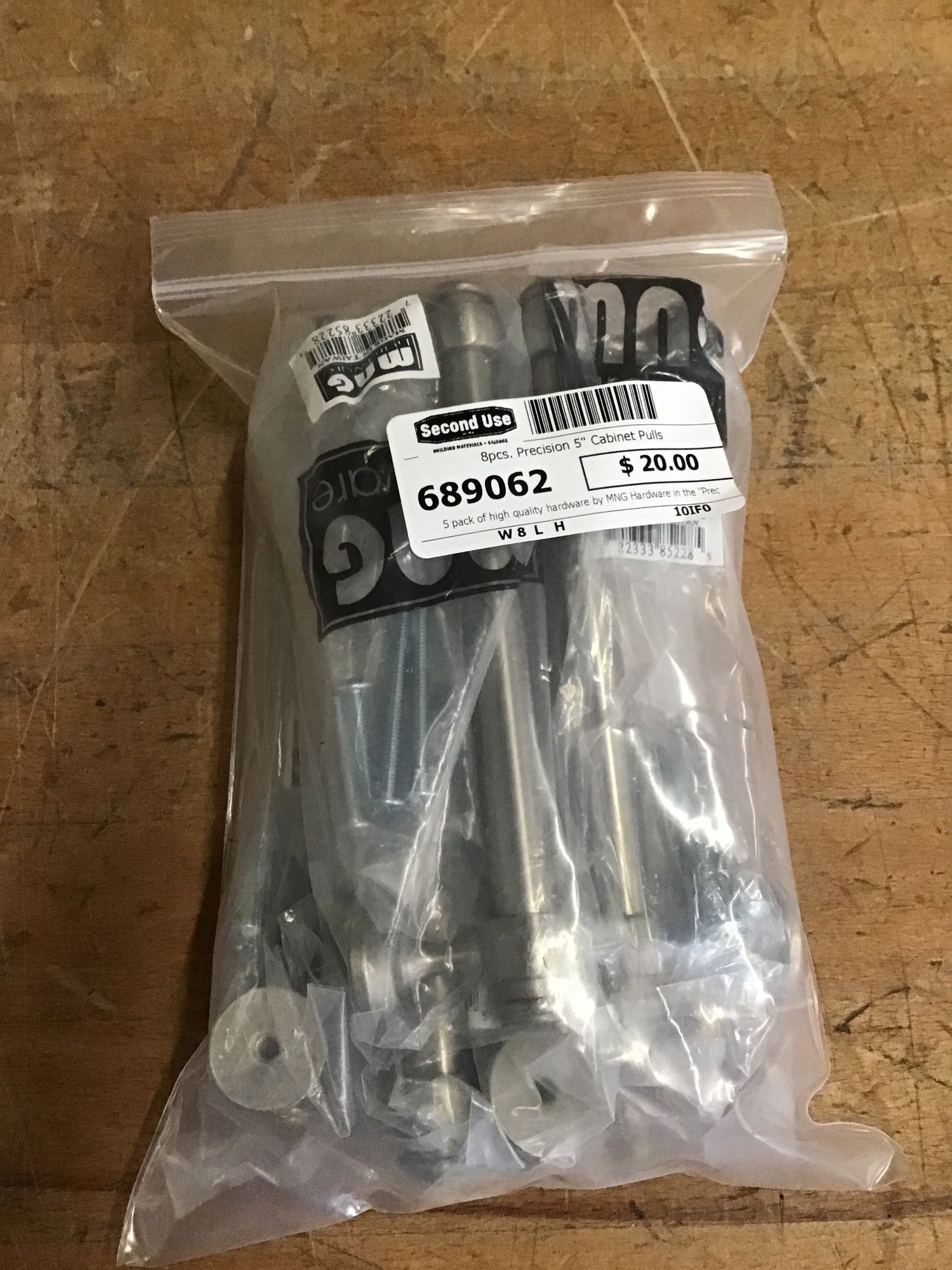 5 pack of high quality hardware by MNG Hardware in the "Precision" series. Measures 8" center to center.