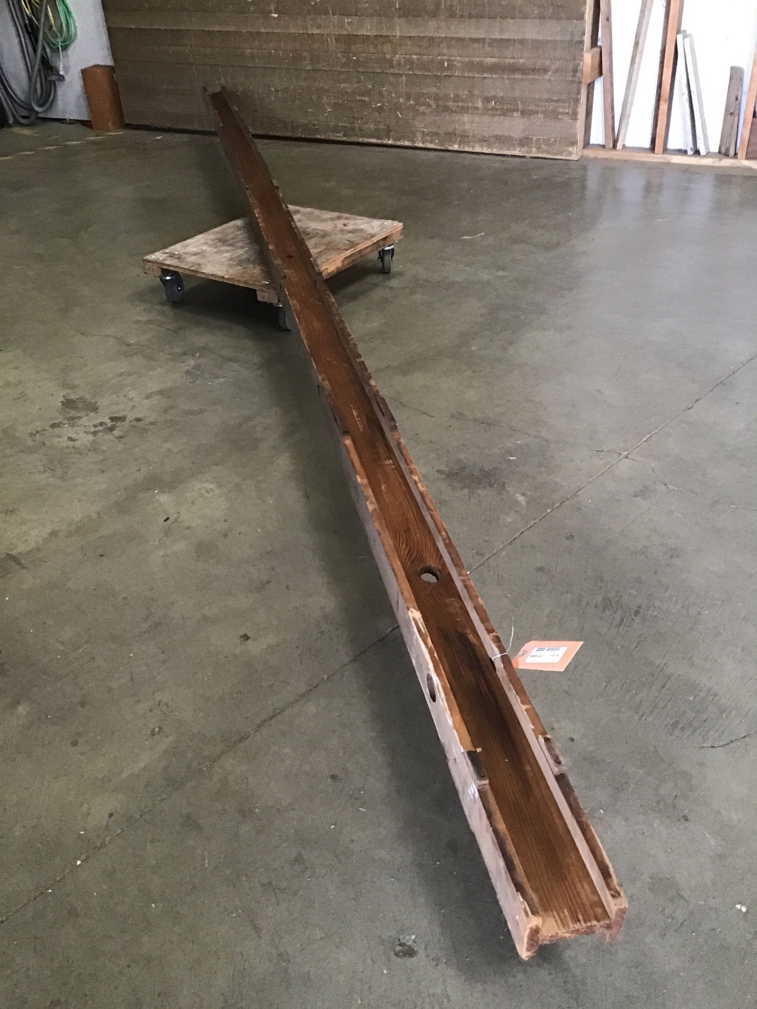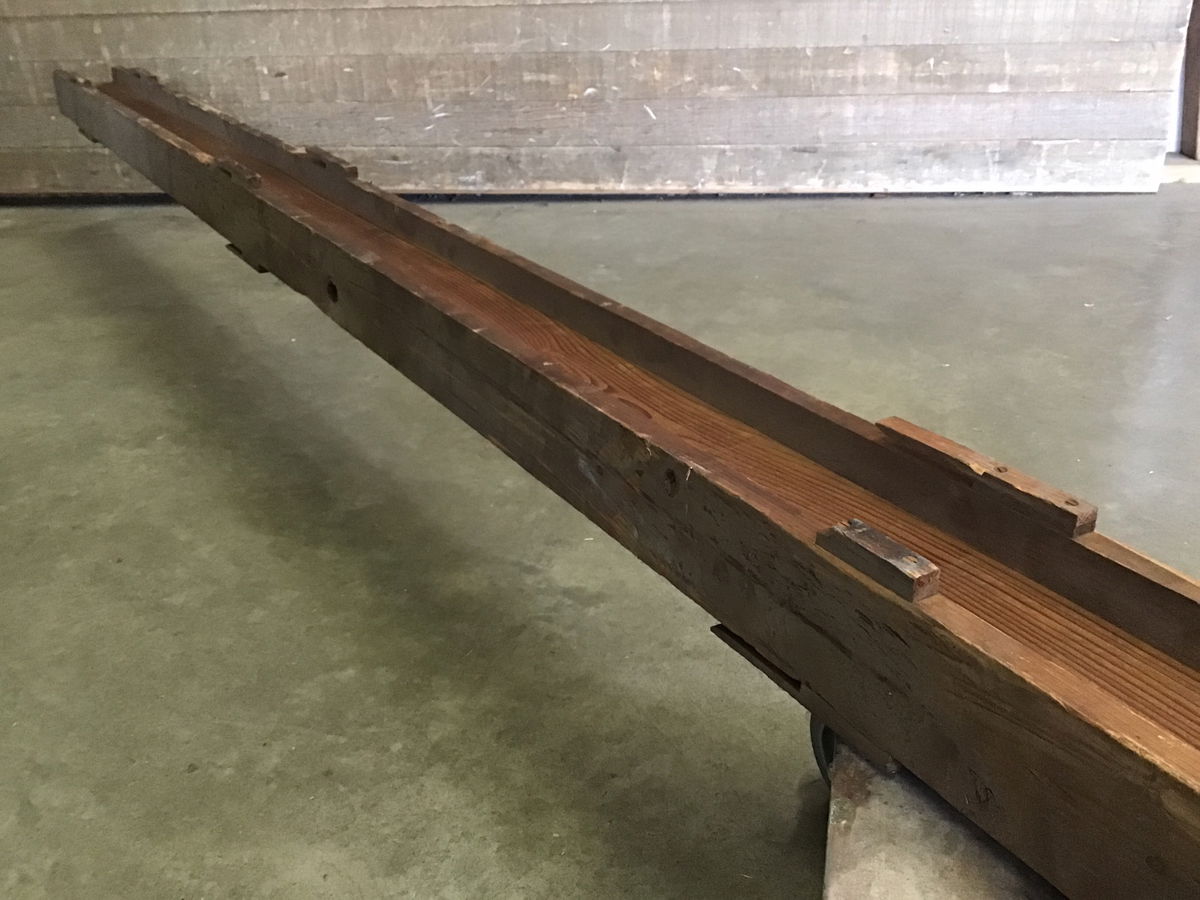 Sweet vintage, wooden gunnel straightening form just under 18' long at 17' 4". This piece once belonged to Tacoma's own Willits Brothers Canoe Co. Makers of a highly sought after "double planked" canoe design that was constructed from early 00s until the mid 60s. Very cool piece of Pierce County industrial, and canoe building history. Maybe some boat-freak out there knows exactly how its used and can repurpose it for their boat building needs. Learn more about it here! Note: several Willits experts reviewed this material as items from the workshop that were not critical to telling the story of the Willitis Brothers (hence why we have it and not the museum). Most of their collection is in a museum's collection now.