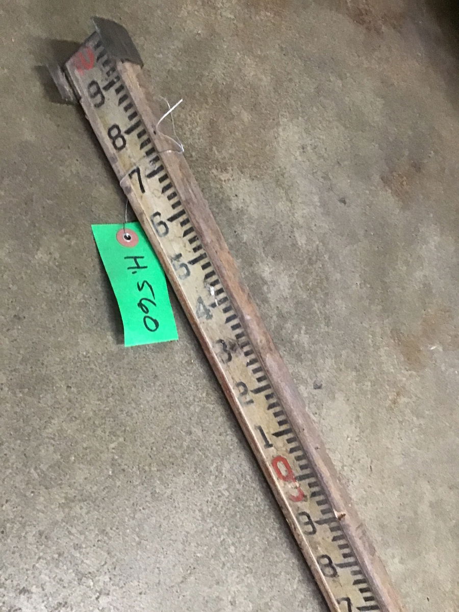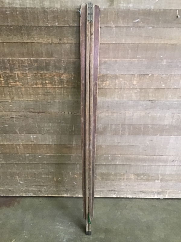 Surveyor's folding stadia rod from the Willits Brothers original shop. Dimensions listed are for the rod folded in half, opened up it measures 10'. Missing the mechanism that would lock it open.