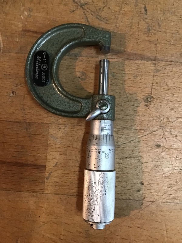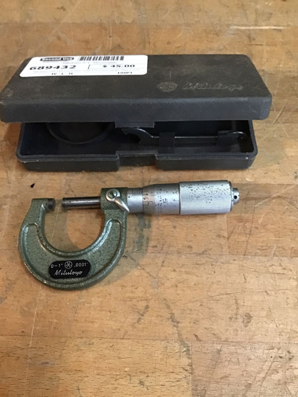 Mitutoyo 103-135 mcrometer with a 0-1 inch range. Has a unique friction thimble that enables a sort of ratcheting action. Typical wear and tear, tiny amount of surface rust. Comes with original case.