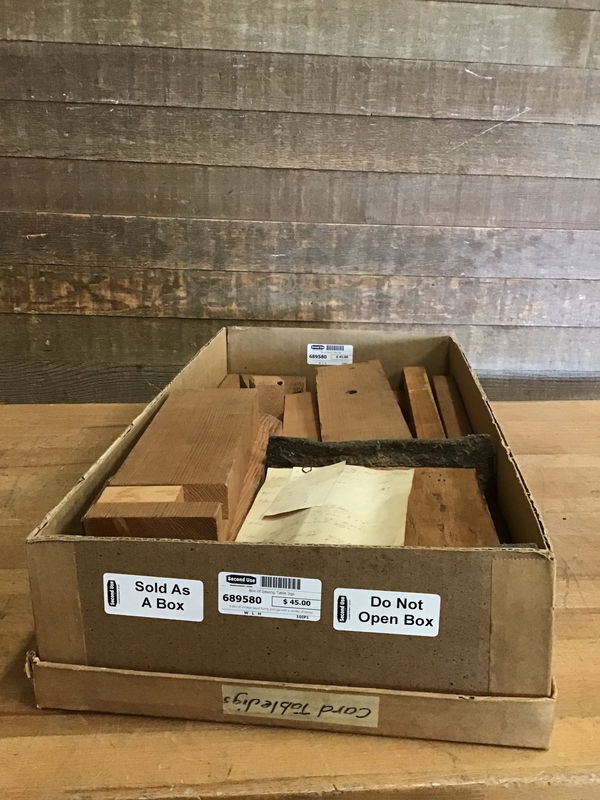 A box of vintage wood forms and jigs with a variety of lumber types and sizes, likely originally used for sewing tables in the machine room in the original Willits Brothers Shop! This comes from Tacoma's own Willits Brothers Canoe Co. Makers of a highly sought after "double planked" canoe design that was constructed until the mid 60s. Very cool piece of Pierce County industrial, and canoe building history. Now ready to help bend some wood planks or even composite decking material. Learn more about it here! Please note that several Willits experts reviewed the material as items from the workshop that were not critical to telling the story of the Willits Brothers (hence why we have it and not the museum). Most of their collection is in the museum's property now.