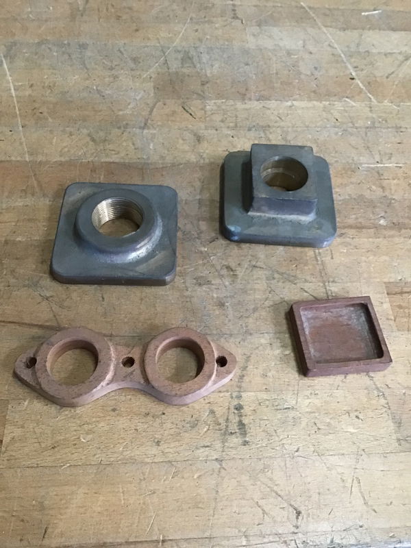 This is a bundled set of vintage Willits Brothers parts with two heavy duty bronze fasteners of some kind with internal threading on each, as well as two distinct wooden casting molds originally used in canoe construction. This comes from Tacoma's own Willits Brothers Canoe Co. Makers of a highly sought after "double planked" canoe design that was constructed until the mid 60s. Very cool piece of Pierce County industrial, and canoe building history. Now ready to help bend some wood planks or even composite decking material. Learn more about it here! Please note that several Willits experts reviewed the material as items from the workshop that were not critical to telling the story of the Willits Brothers (hence why we have it and not the museum). Most of their collection is in the museum's property now.