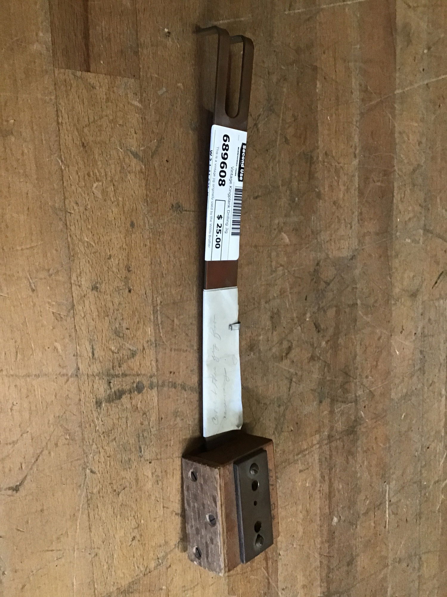 This is a vintage jig originally used by the Willits Brothers for drilling holes in the kingplanks (a central plank in the center of a wooden boat) of their canoes. This is a fascinating piece of boat-making history and would be a really cool collectable for a maritime enthusiast. This comes from Tacoma's own Willits Brothers Canoe Co. Makers of a highly sought after "double planked" canoe design that was constructed until the mid 60s. Very cool piece of Pierce County industrial, and canoe building history. Now ready to help bend some wood planks or even composite decking material. Learn more about it here! Please note that several Willits experts reviewed the material as items from the workshop that were not critical to telling the story of the Willits Brothers (hence why we have it and not the museum). Most of their collection is in the museum's property now.