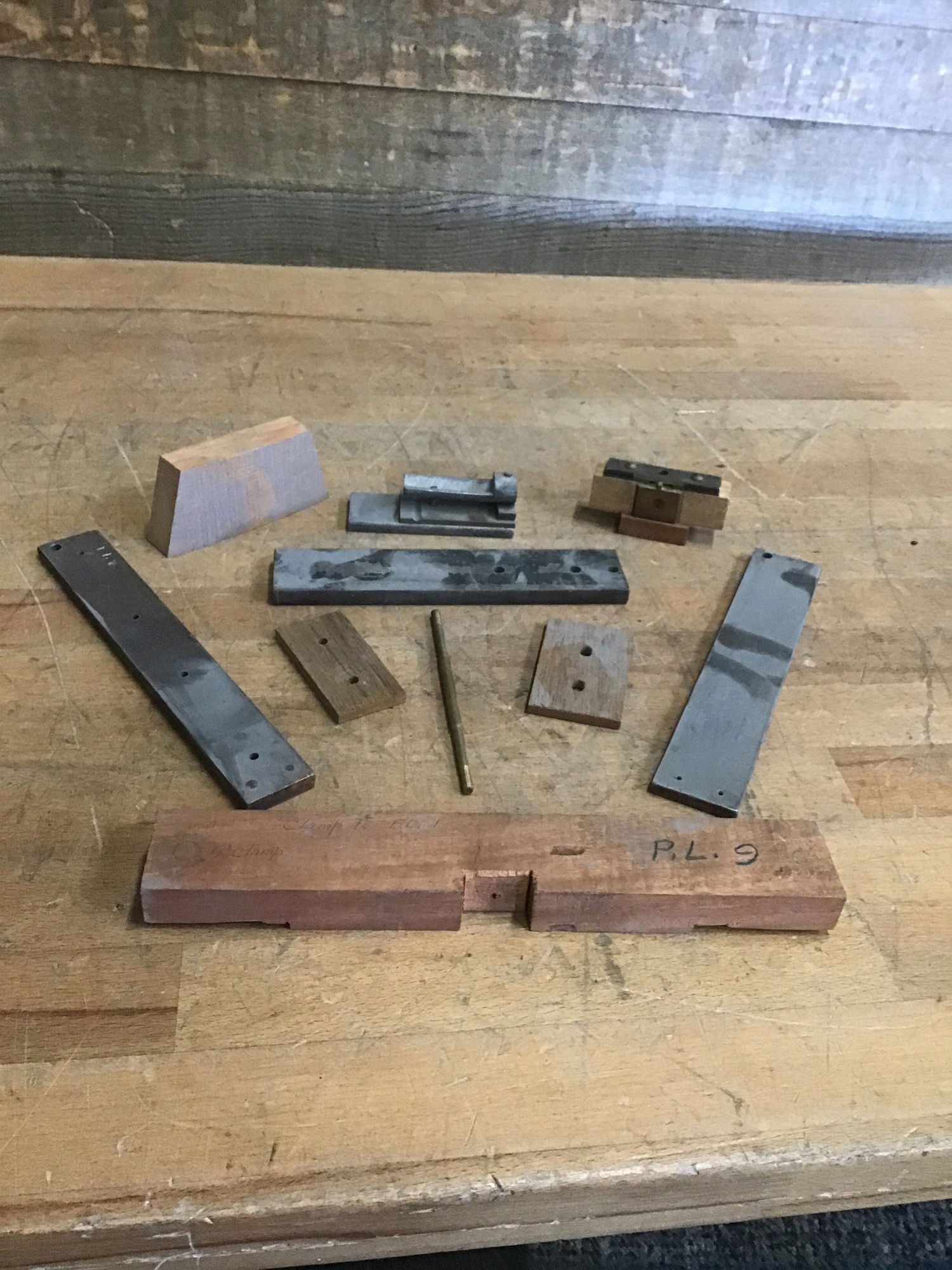 Box of vintage metal and wooden jigs originally used by the Willits Brothers for creating painter loops, which are loops crafted for the bow of a canoe/boat that is used to attach the painters (ropes) for mooring and towing purposes. This comes from Tacoma's own Willits Brothers Canoe Co. Makers of a highly sought after "double planked" canoe design that was constructed until the mid 60s. Very cool piece of Pierce County industrial, and canoe building history. Now ready to help bend some wood planks or even composite decking material. Learn more about it here! Please note that several Willits experts reviewed the material as items from the workshop that were not critical to telling the story of the Willits Brothers (hence why we have it and not the museum). Most of their collection is in the museum's property now.