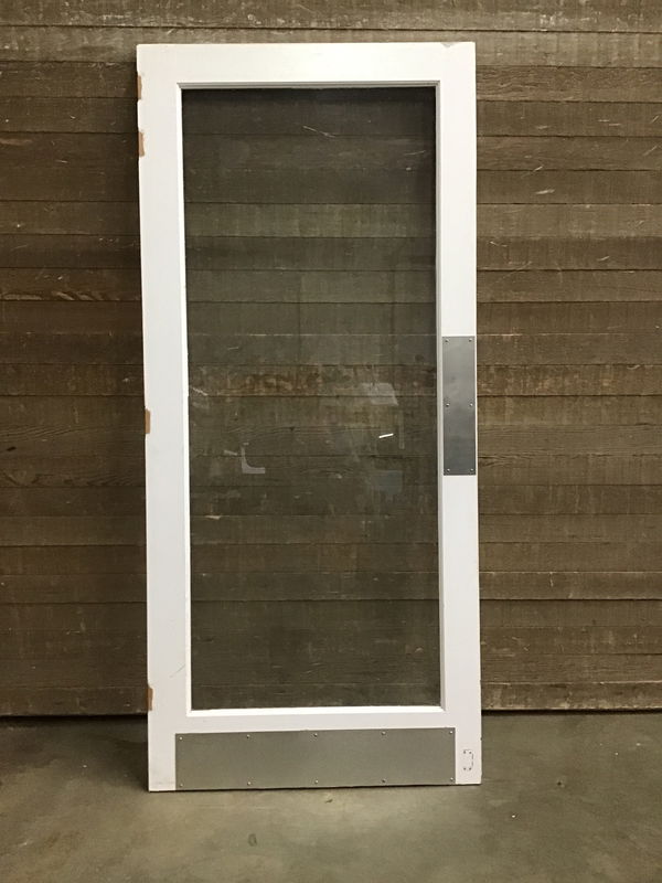 Interior Glass Butler Door. Previously installed. Single pane Full lite. Hinges are cut for right hand swing, but throw some double action spring hinges on and hire yourself a butler for the full experience. Kickplate and handplates installed on both sides. This one is white.