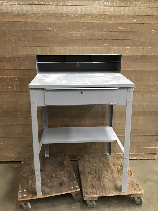 Adjustable height grey shop desk from Uline. Retails new for $290. Listing from Uline site.