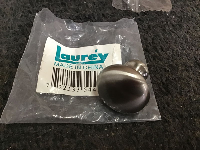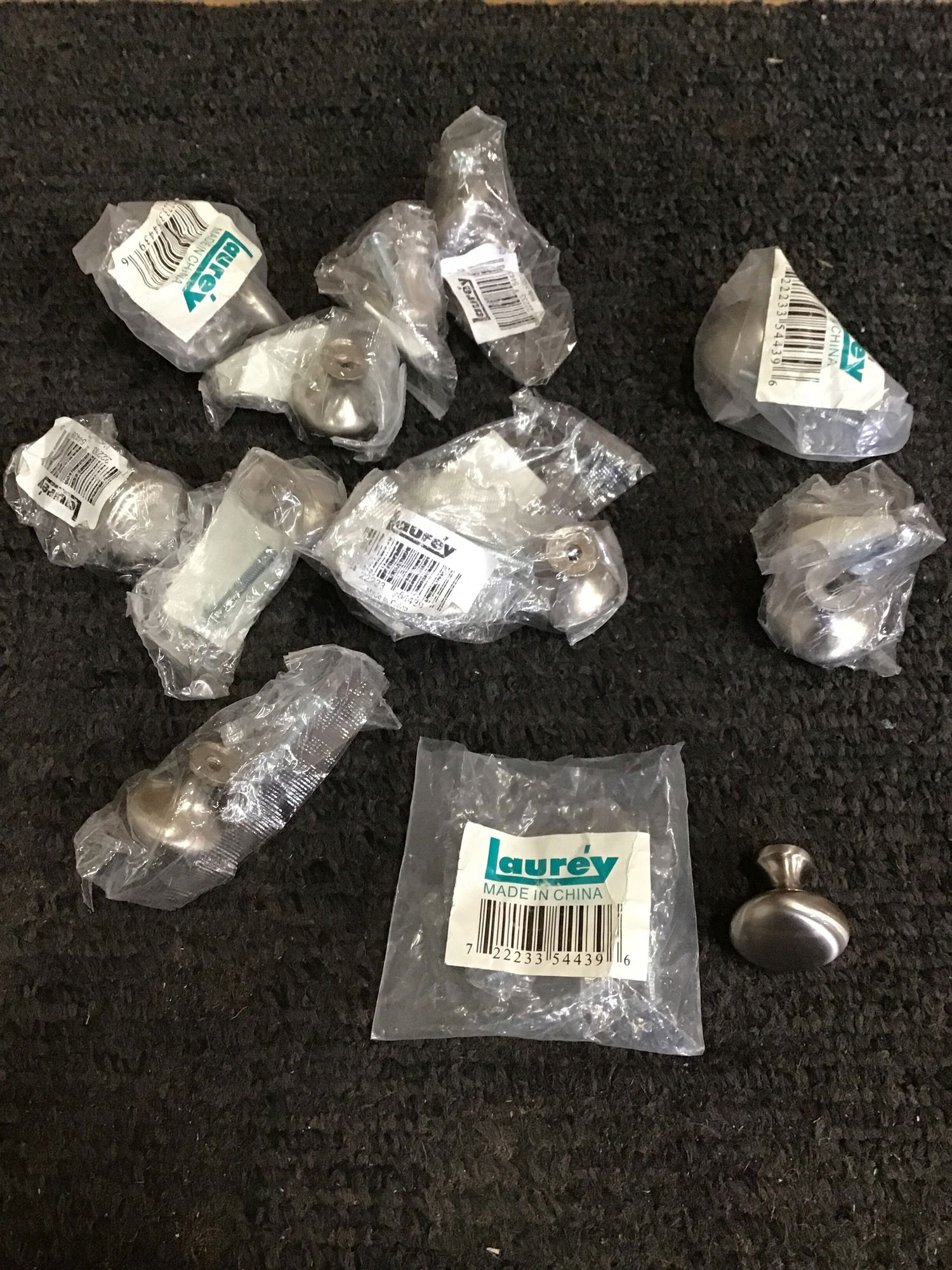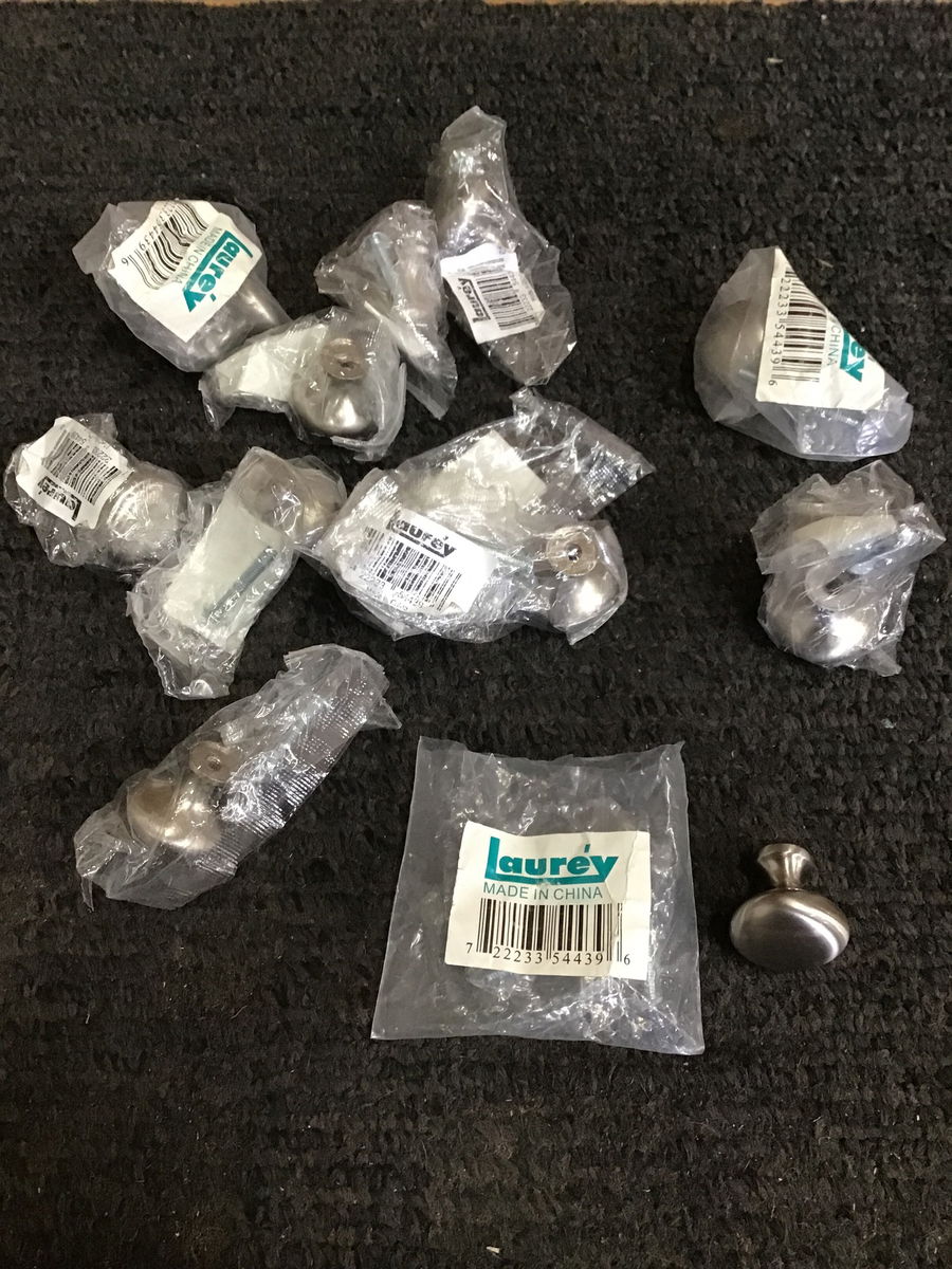High quality satin chrome cabinet knobs by Laurey's "Celebration" collection. Still in packaging and ready to revive/set up your cabinet set! Photos may be representational.