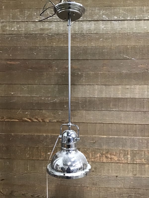 Westinghouse mini pendant ceiling light with a chrome finish and white light. Wiring looks to be in good condition though we always recommend a full test prior to installation. These cost just under $100 new online, see here.