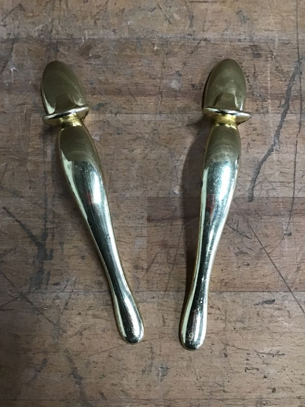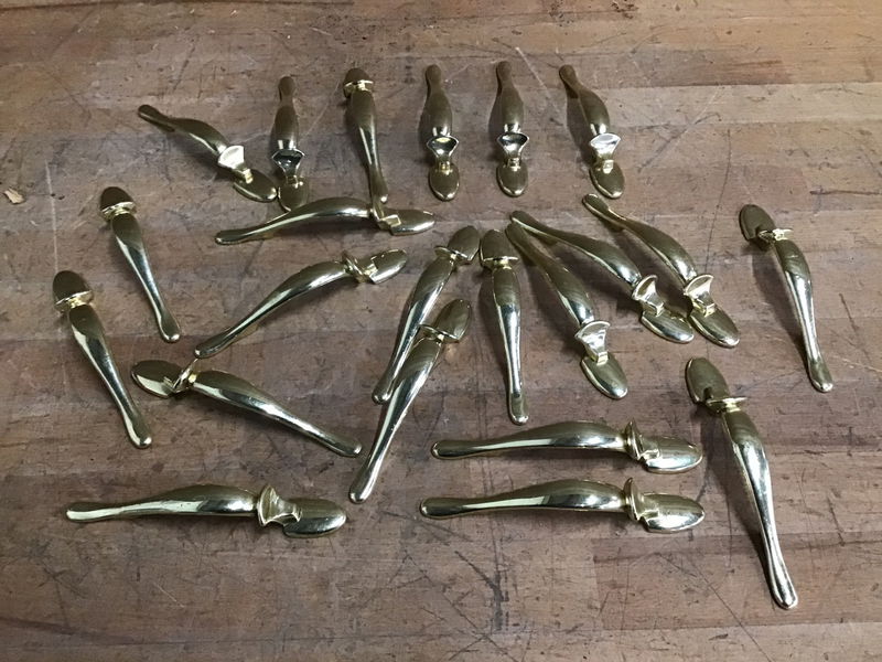 Set of 22 brass cabinet pulls in good, used condition. Looks to be little to no wear.