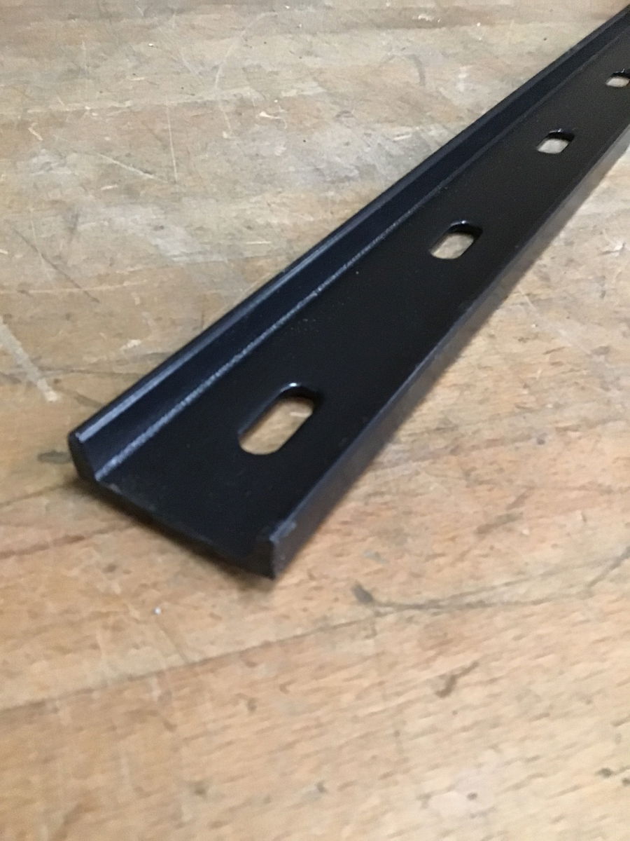 Locally fabricated by a family operation. 1/2" x 2" c-channel slab support bracket. Slots cut with a waterjet and painted with a black finish.