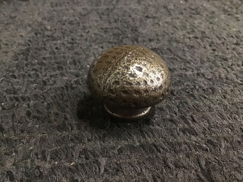5 pack of cast mushroom dresser/cabinet knobs with a dark antique brass finish. Great looking and they feel premium in the hands due to the heft. Still in their individual packaging. Similar ones retail for $12-15 a pop though this one is a little wider.