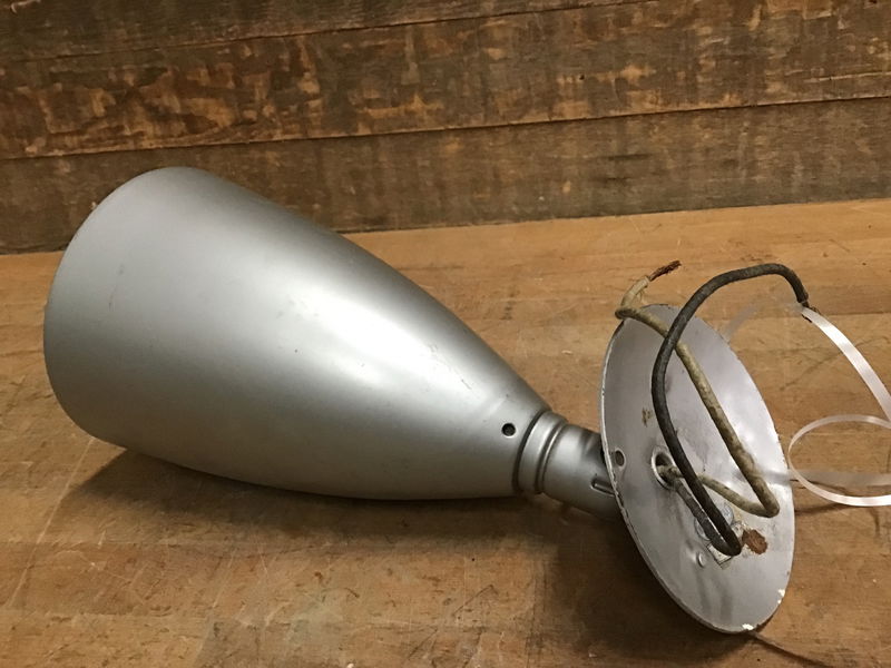Vintage steel downlight with adjustable angle. Comes with the old style paper shielded wire so will need a new socket kit dropped in. Our Seattle store has custom light wiring and maintenance services if DIYing is out of the comfort zone!
