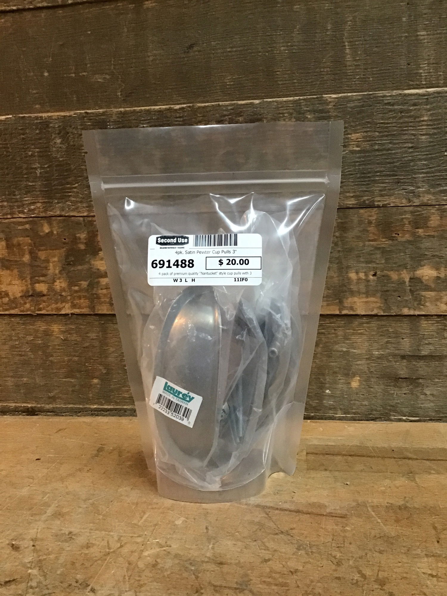 4 pack of premium quality "Nantucket" style cup pulls with 3" center to center mounting holes and a satin pewter finish. Great for revamping or setting up a cabinet or dresser! More info on these here, they seem to retail for around $20 a pop.