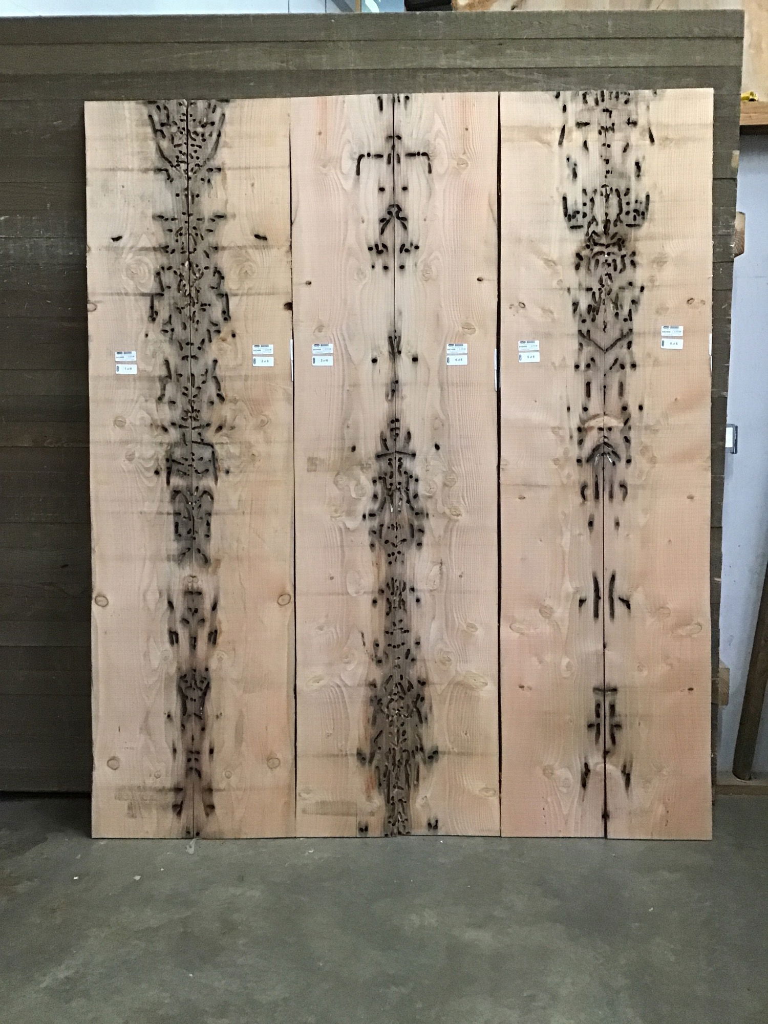 Locally milled & kiln dried, reclaimed, old growth Fir that was formerly submerged in local saltwaters & used in the Pacific Northwest timber transport trade. Fantastic stock for all sorts of projects. Traces of life long gone can seen here, from the beautiful channels left behind by the seafaring teredo clam to the tiny punctuations of the gribbles who settle in afterward - the handiwork of annelids, mollusks and arthropods have all been made visible. *** Dimensions are for the complete set