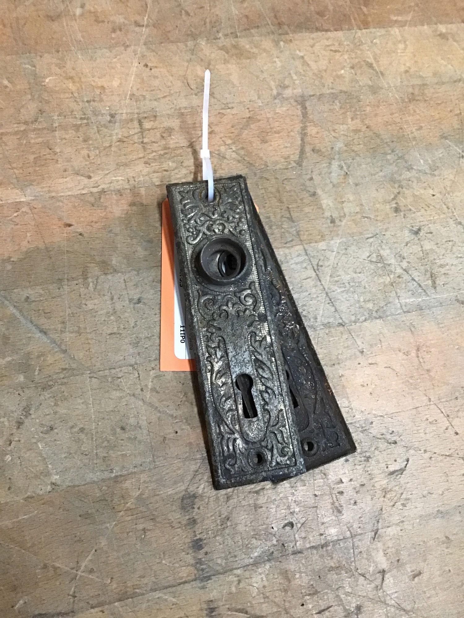 Vintage set of Art Nouveau style eschuteons. Has some patina and mostly down to its steel finish. Might look great with some liquid gun blueing as a finish.