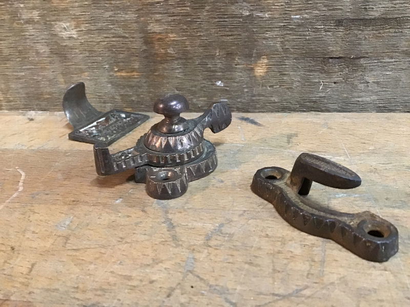 A really cool blast from the past window sash hardware set, complete with latch combo and the sash lift. Is a vintage "Eastlake" style cast-brass set with an eagle claw design and stunning patterns. Requires mounting hardware but overall would be the perfect ornate hardware for a sash window!