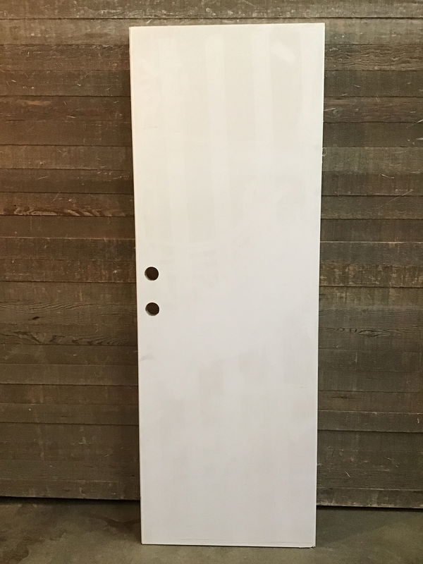Painted white exterior slab door. Right hand swing. Cut for dead bolt. Has some scuffs and marks from storage but hasn't been installed. Perfect for a garage or shed door.