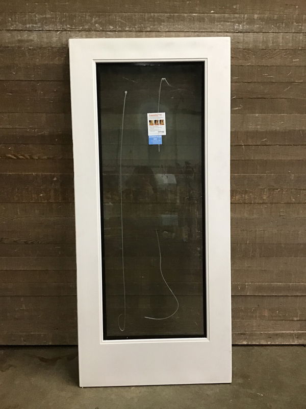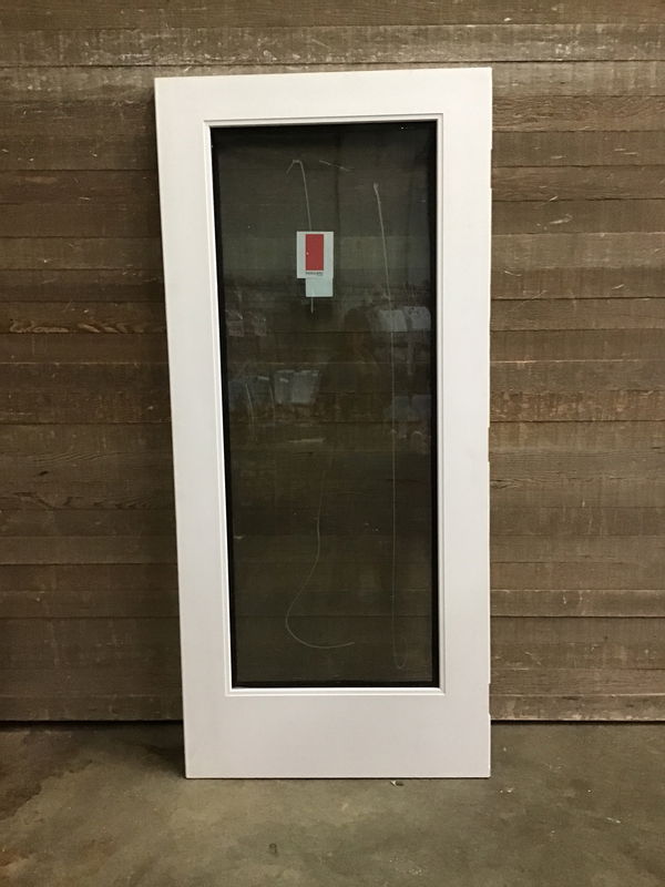 Fiberglass clad exterior french door, in never installed shape. Just has some damage from pallet banding on the hinge side. Will be shown in photos.