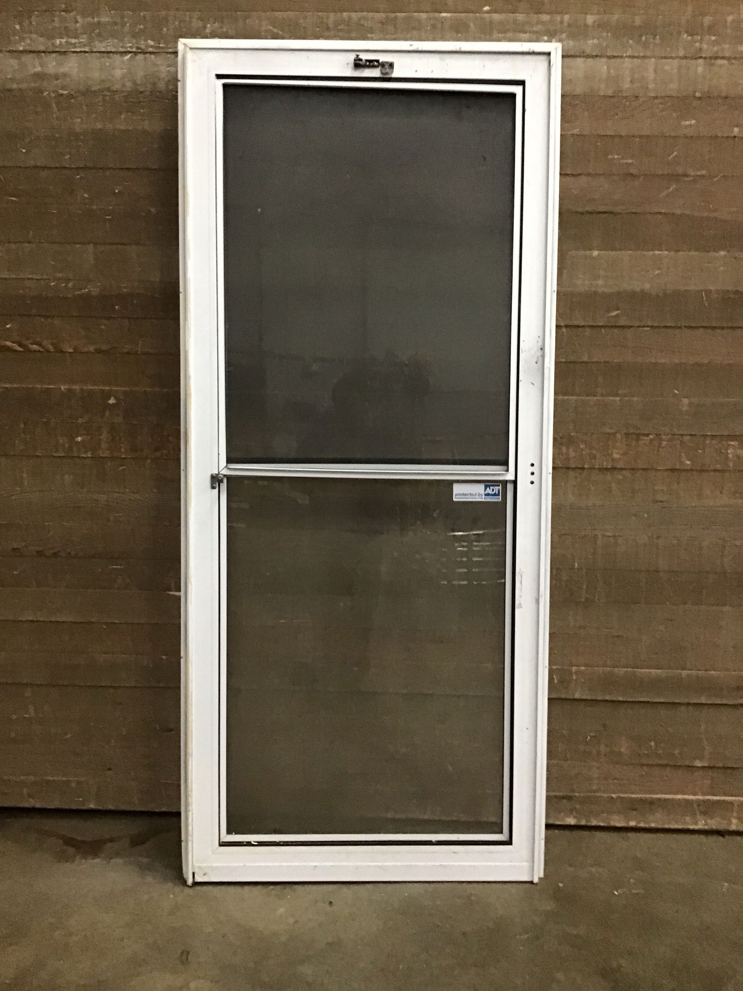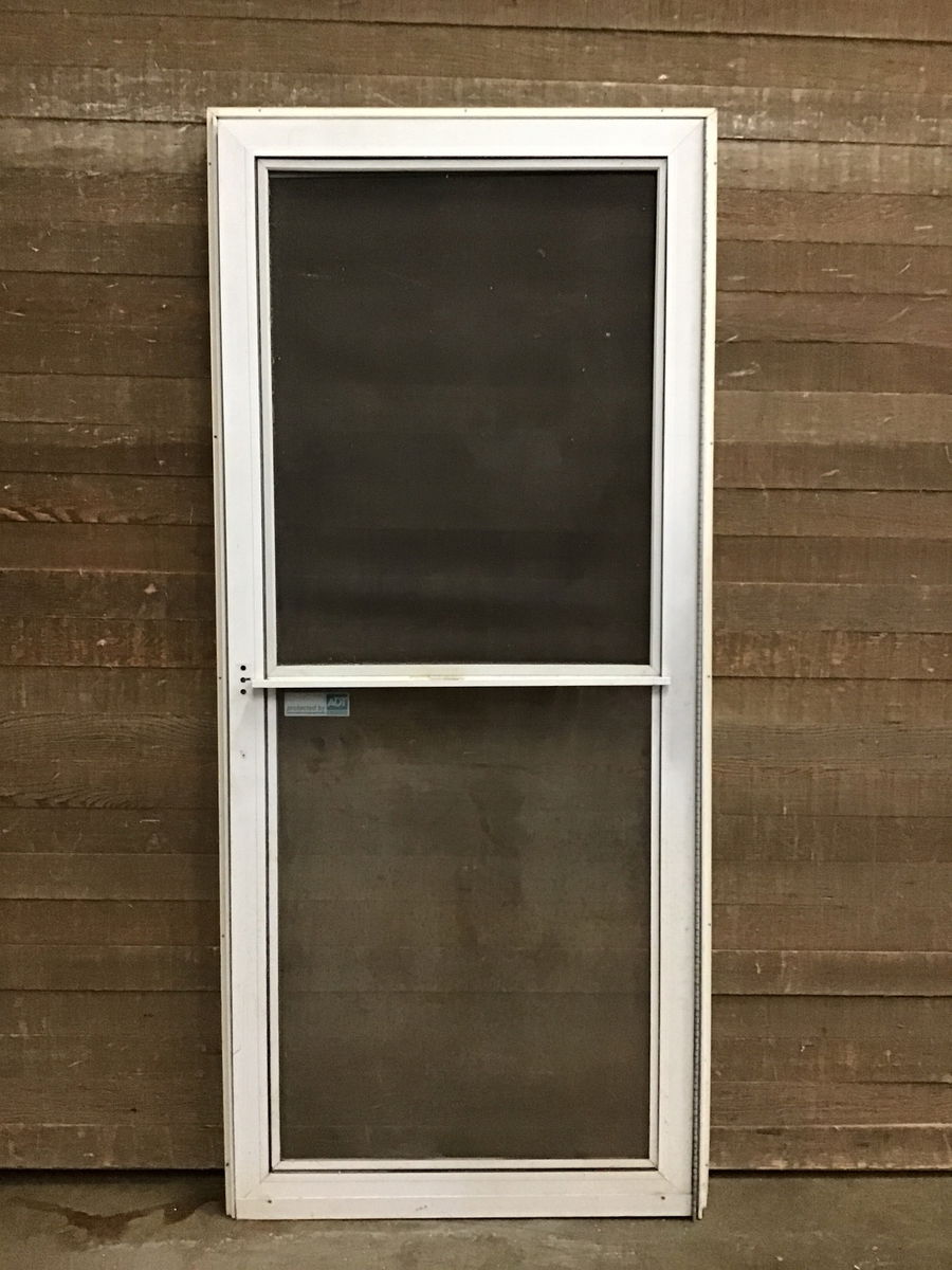 Aluminum security door with two lites and a screen. Comes with hinge and jamb.