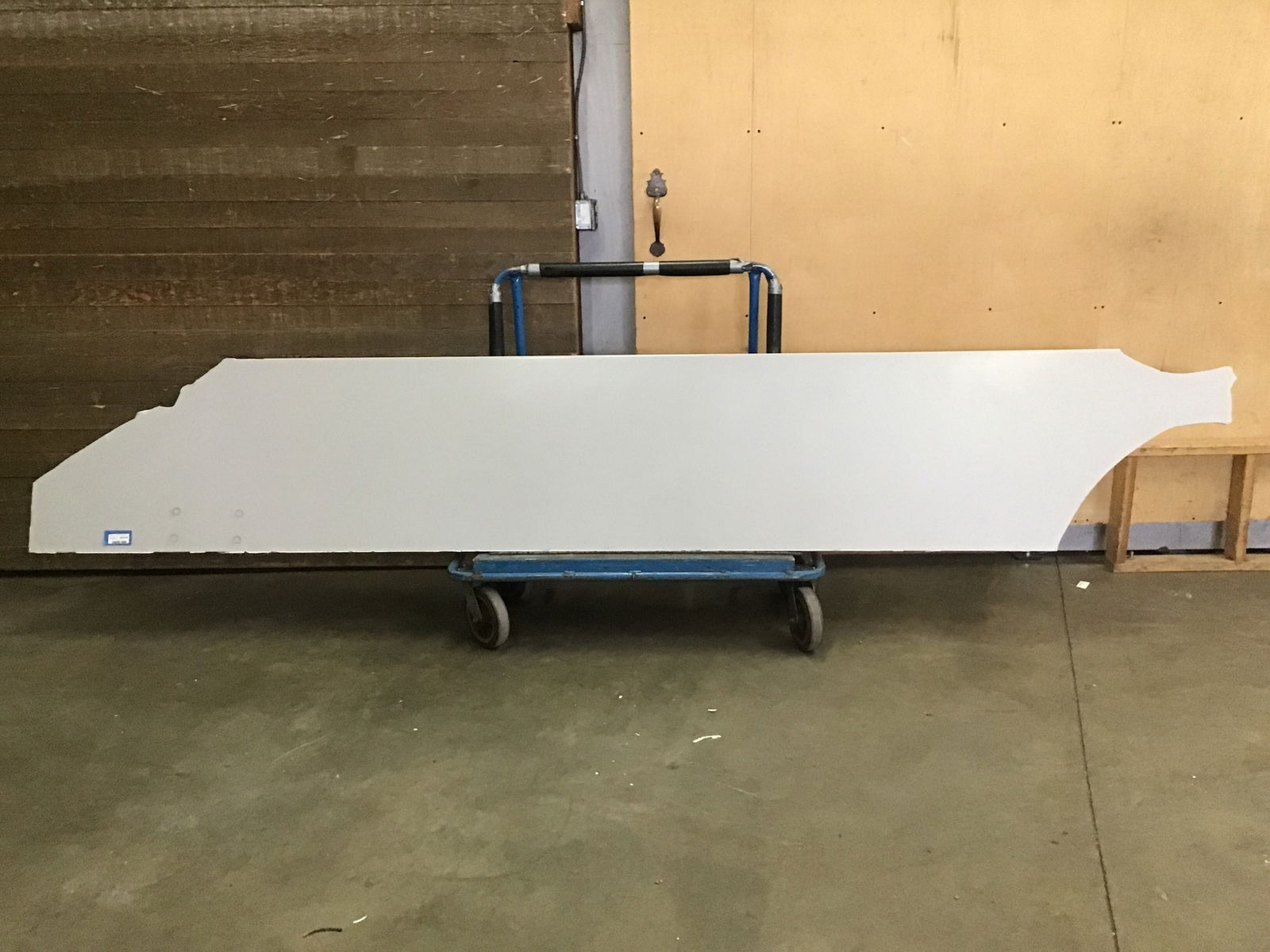 LG Hausys HI-Mac countertop in a light grey color. Has one fully finished side. Both sides are broken and is accounted for in the measurements. The thickness of the material is 3/8" thick. Approximately 15 square feet.