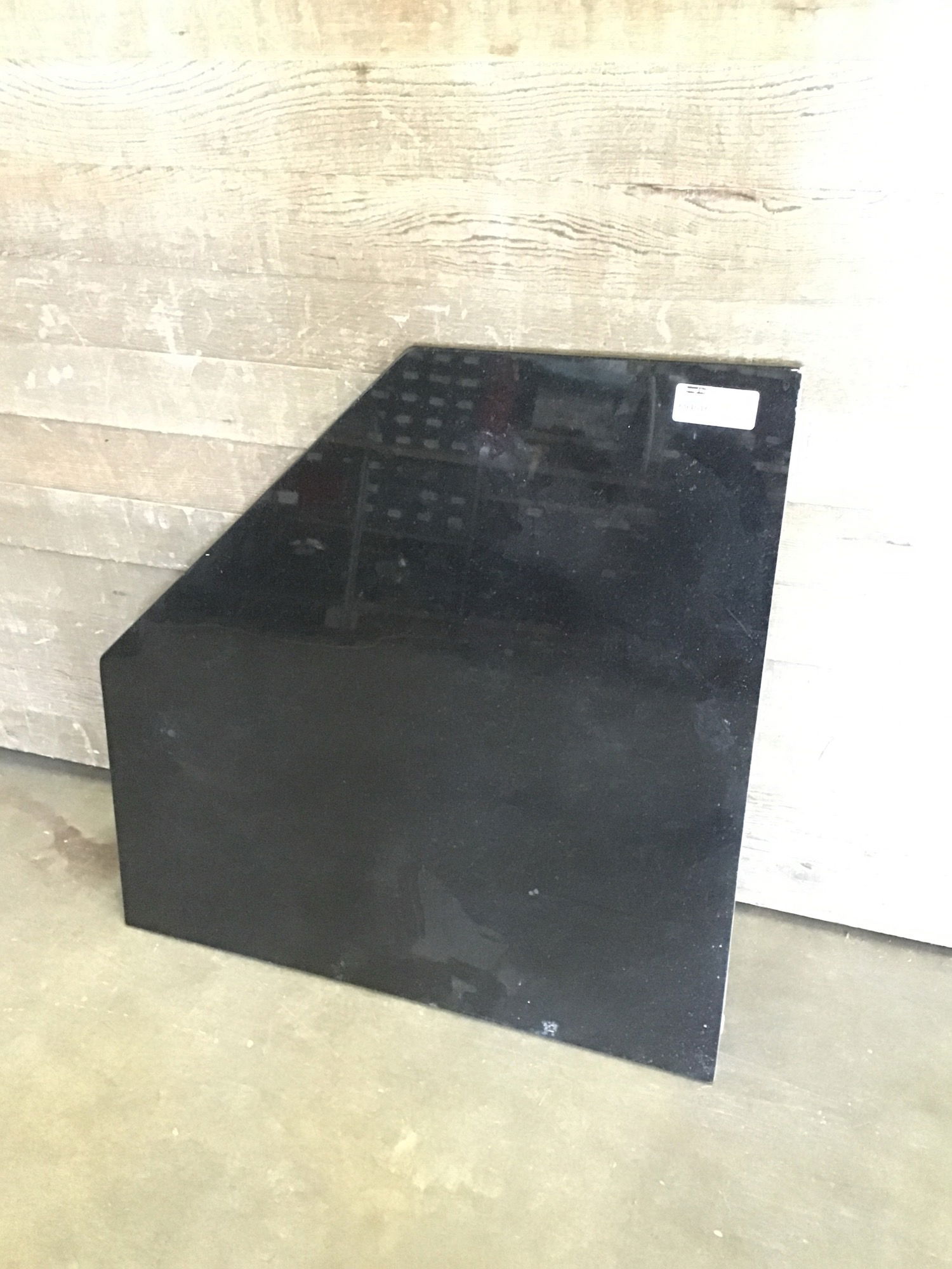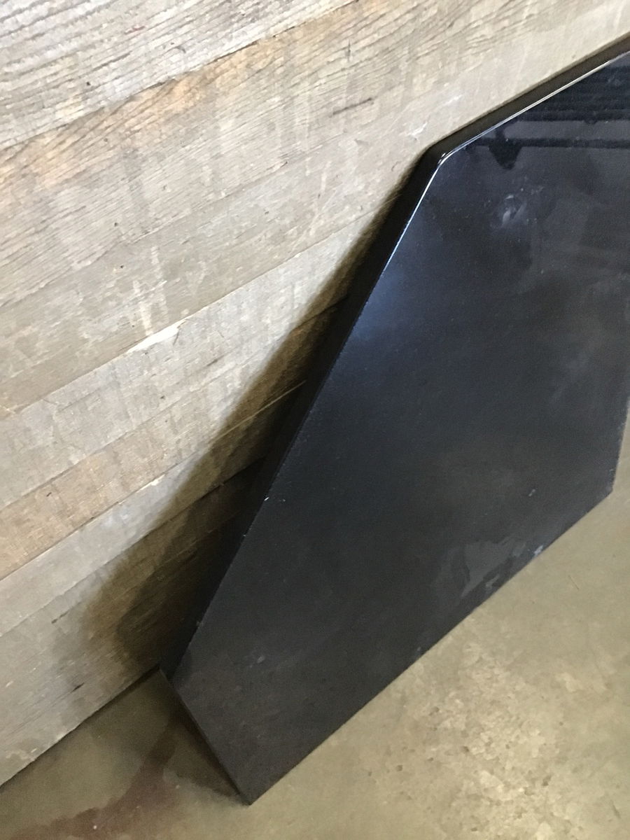 Small block of black manmade stone countertop in good, used condition. Good for a single cabinet or small tabletop. Three of the five edges are finished, one is a straight edge and the last is mostly straight. Depth from front edge to back corner is 30.25"