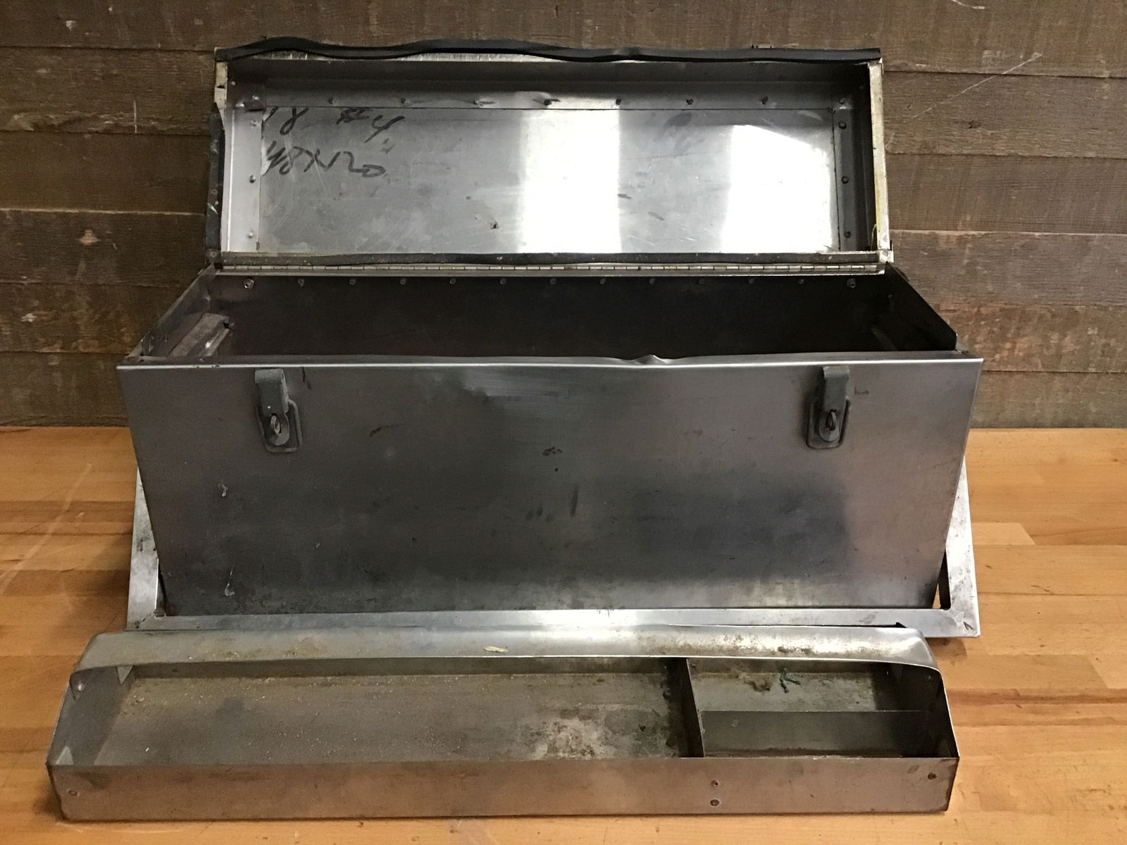 Stainless steel toolbox nice and large plenty of space for whatever you choose.