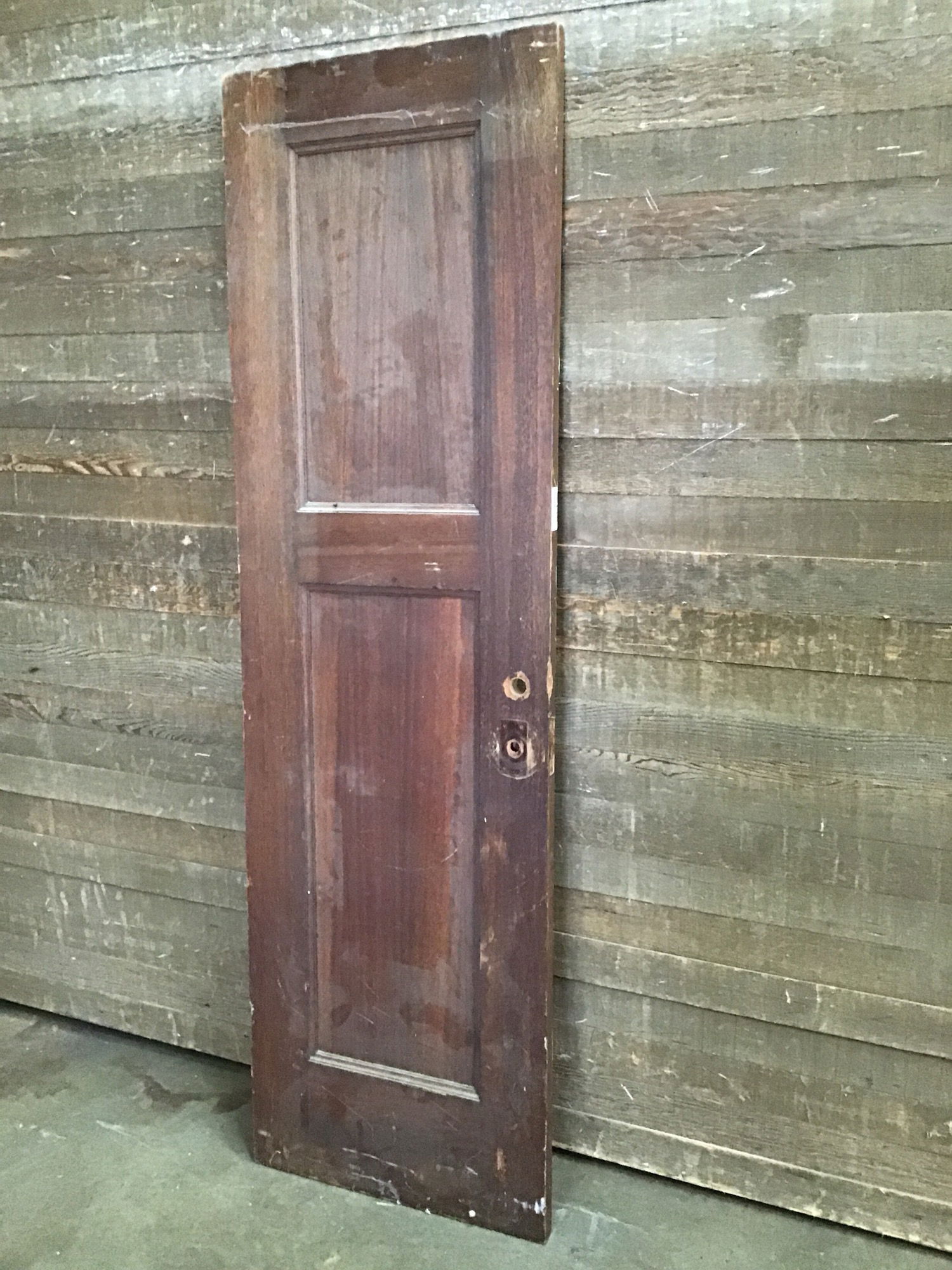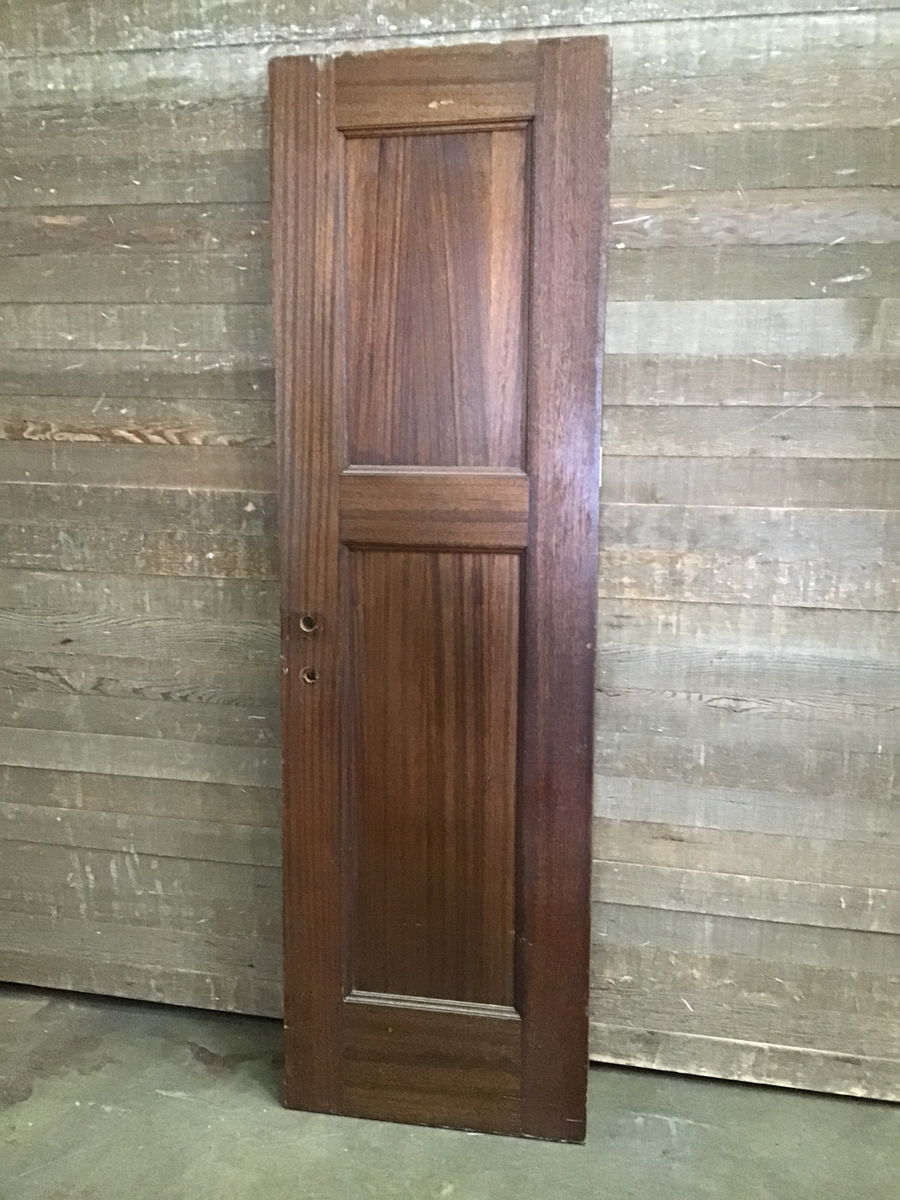 Vintage, stained Mahogany two panel door that came to us as surplus materials from the old seminary building at St. Edward State Park in Kenmore. Has some minor cosmetic damage, but is in overall good, sturdy condition. The largest bit of damage is a chip out of the bottom, see photo.