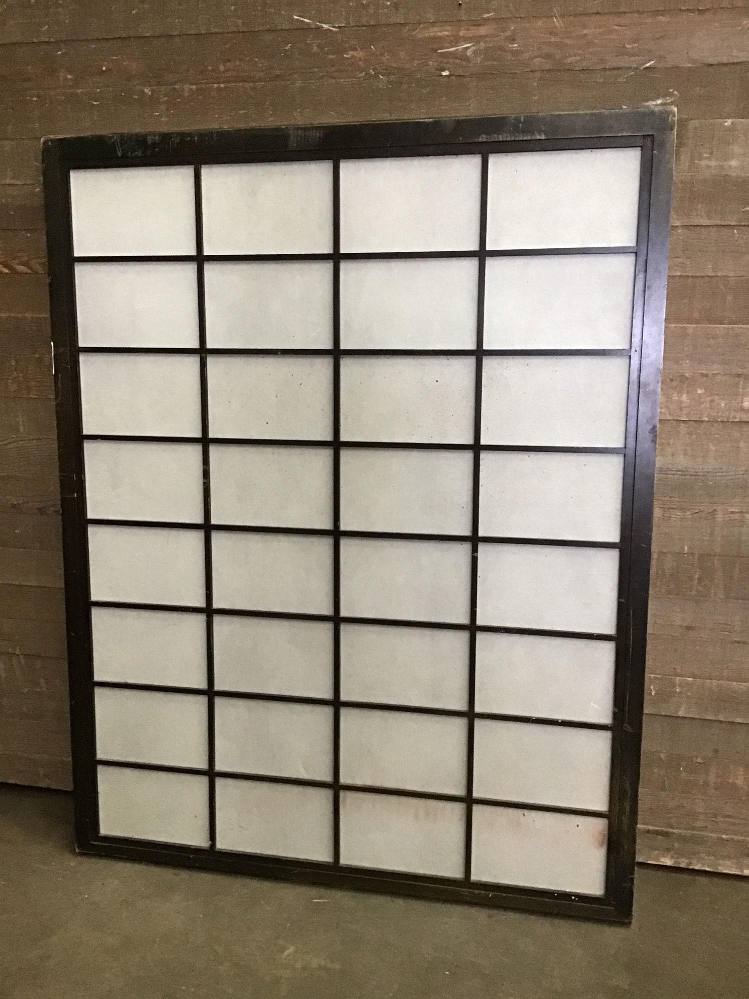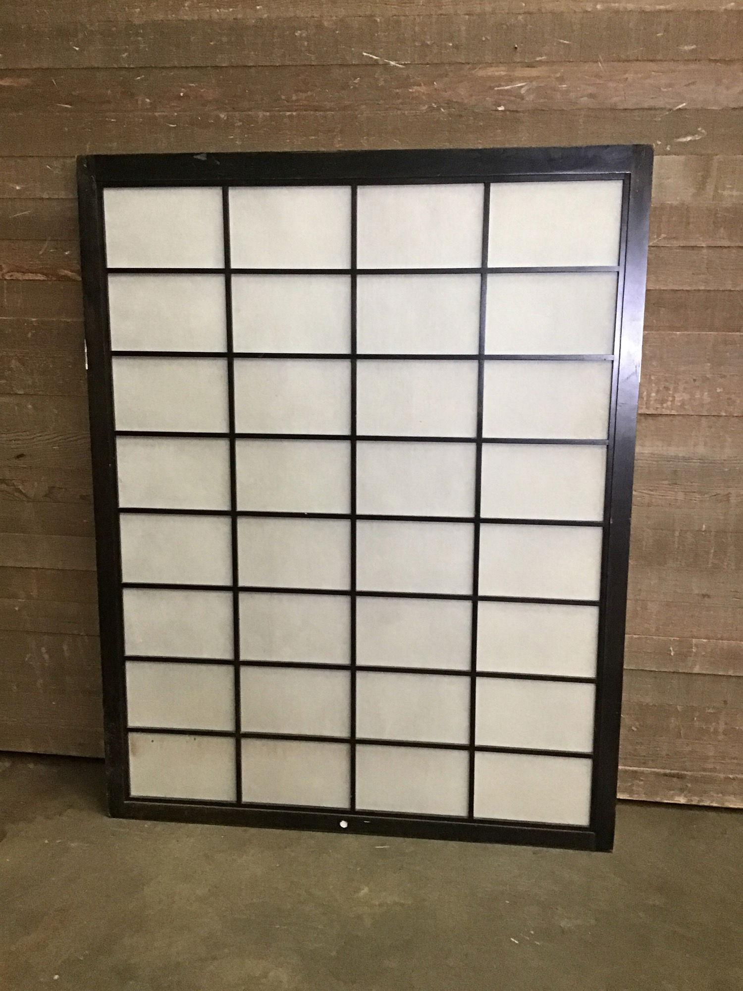 Smaller half wall shoji screen in good condition. It has a dark stained wood frame and rice paper panes. Might have some minor cosmetic damage. Ready to be repurposed! No tears or rips, though there are some marks on some panels that may or may not clean out.