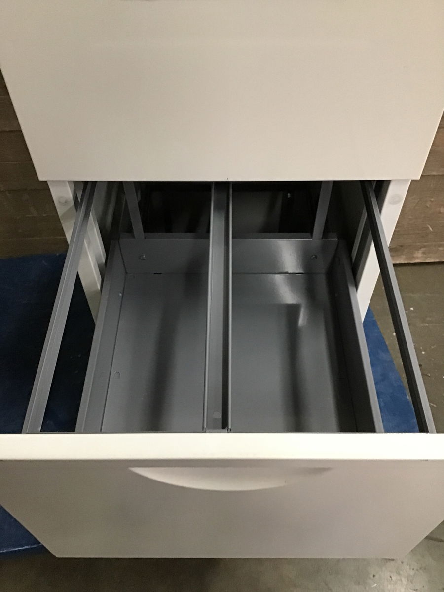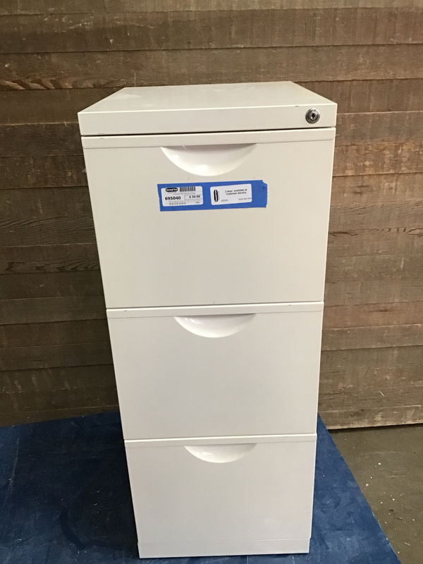 Solid 3-drawer file cabinet with 2 keys. In a nice off-white color. In really good condition.