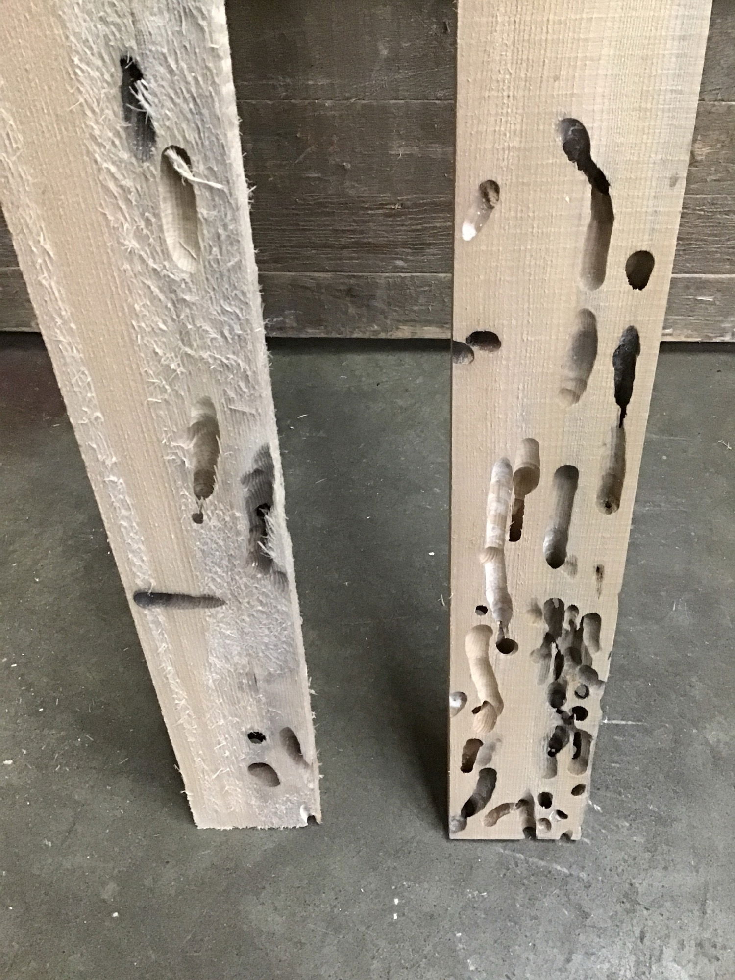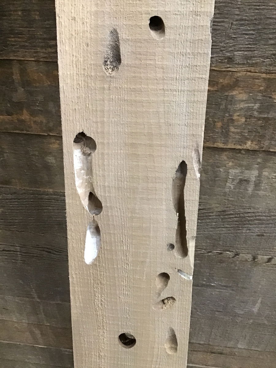Locally milled and kiln dried. Mostly Fir, some Hem and Spruce mixed in. "Teredo lumber" is milled from salvaged boom logs that have seen 30-70 years of use on the waterways of the PNW to transport lumber from forest to mill. The teredo clam likes to call these logs home by burrowing deep and creating unique and intricate patterns in the wood. Most of these boom logs were old growth. Beautiful wood that makes a statement. All lumber has been milled, cleaned, and kiln dried out on the Olympic Peninsula. Lengths vary, most from 4-8'. Please note, this is a bulk item and can not be put on hold. Come see us in person and get the ones you like!