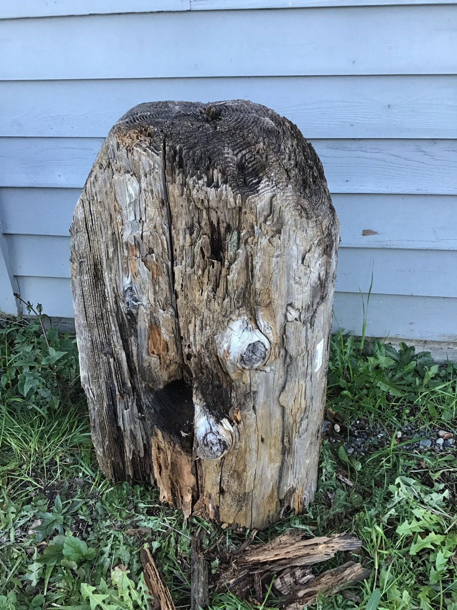 A classic Northwest coastal look: rustic fir round with teredo clam bores and one large holes. Average width 19" and height of 38". This raw stock fir comes from the same type of wood, Teredo Fir, we have been merchandising as paneling, bookmatched sets and live edge lumber. This one is on the fragile side, hence the lower price. Incorporate a bit of local history into your yard!