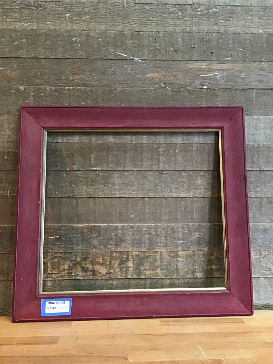 Antique Victorian square wooden frame. Crimson paint with a gold interior border. Would be great for a piece of gothic art or mirror.
